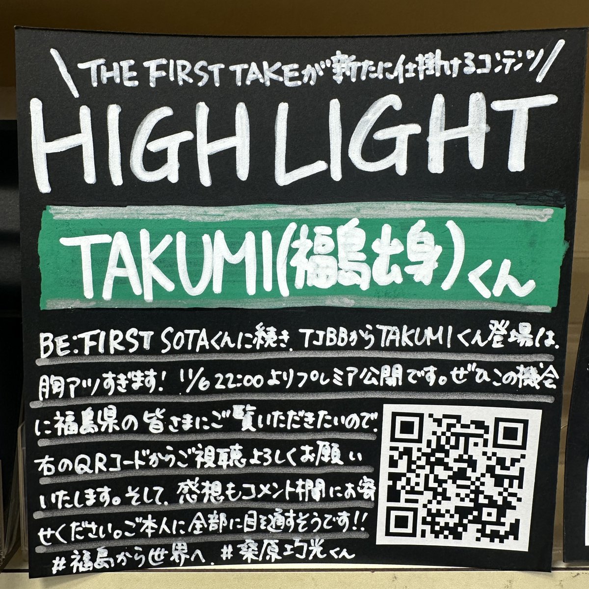 【#TAKUMI】 あの #THEFIRSTTAKE が個人のパフォーマンスにフォーカスする『#HIGHLIGHT』に #THEJETBOYBANGERZ から福島県出身のTAKUMIくんが挑みます🔥 本日22:00 Youtubeにて『#LetsDance Remix』をプレミアム公開です✨ 福島から世界へ🚀ぜひご覧ください! #TJBB