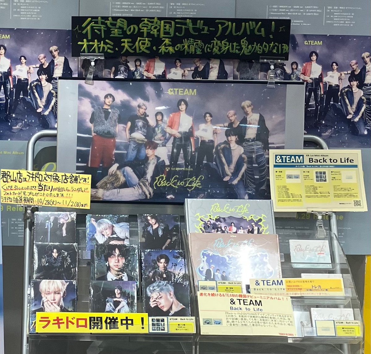 【&TEAM】 KR 1st Mini Album『Back to Life』本日発売‼️ タワレコ特典🎁トレカ(ランダム) 先着特典🎁応募抽選用シリアルナンバー さらにさらに‼️ \CDショップ店頭イベント開催中✨/ ⭐️ラッキードローイベント(11/2(日)まで) ⭐️パネル展示&プレゼント #andTEAM #앤팀