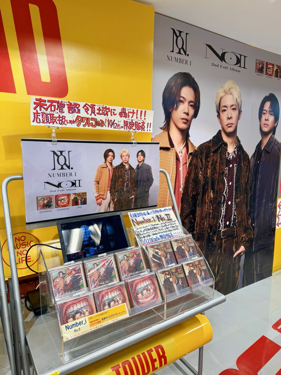 【#Number_i(@number_i_offic)】 \ 📢本日最終日‼️ / タワレコ限定 2nd full Album『No.Ⅱ』 期間限定販売は本日10/12(日)まで‼️ 🎁特典🎁 名刺サイズステッカー 🌟特別レシート発行 🌟店頭サイネージ動画放映 こちらも本日が最終日‼️ ご来店お待ちしております😊 #Number_2 #Number_ixタワレコ