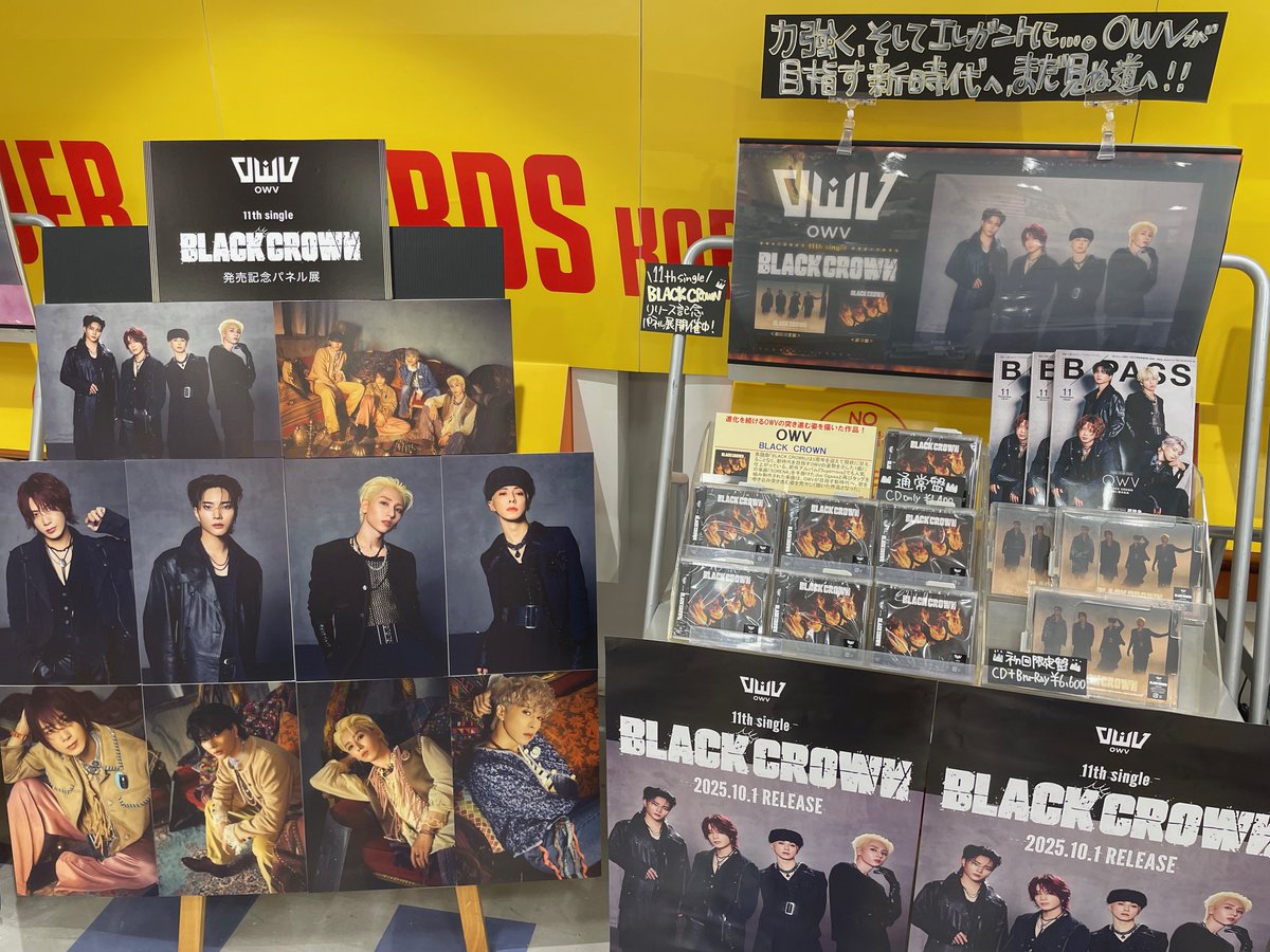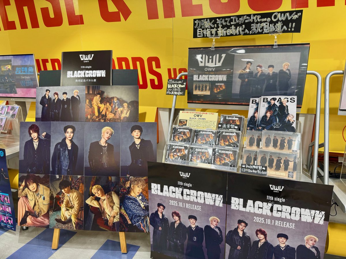 【#OWV】 本日入荷予定となります、OWV 11th single 『BLACK CROWN』のパネル展に関しまして、 当店でのパネル展示は15時からとさせて頂きます。 何卒ご理解賜りますようお願い申し上げます。 #OWV_BLACKCROWN #OWV