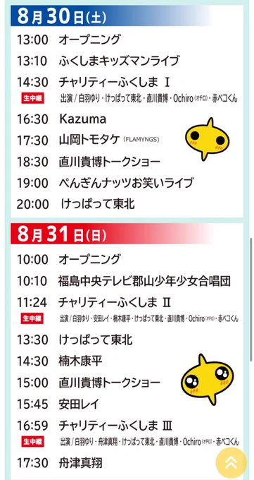 ✨本日開催✨ #福島中央テレビ #24時間テレビ『#愛は地球を救う』🌏 【会場】福島県 日大工学部キャンパス 📺11:24 チャリティーふくしまII生中継 🎤13:30 ライブ 📺16:59 チャリティーふくしまIII生中継 昨日に引き続き、けっぱって東北の皆さまが出演🌈 8月の締めくくりに是非ご覧ください✨