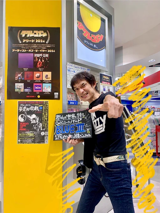 【BLUE III さんご来店】 「音楽的遊戯/GAME OF MUSIC」タワーレコードチャート郡山店1位獲得🎊 ギターウルフセイジさん大推薦の郡山のブルー・スリーこと #ベイビー佐々木 さんご来店👊 サブスク配信無し! 店頭で試聴可能! コメント動画はインスタで☟ instagram.com/tower_koriyama… #ブルースリー