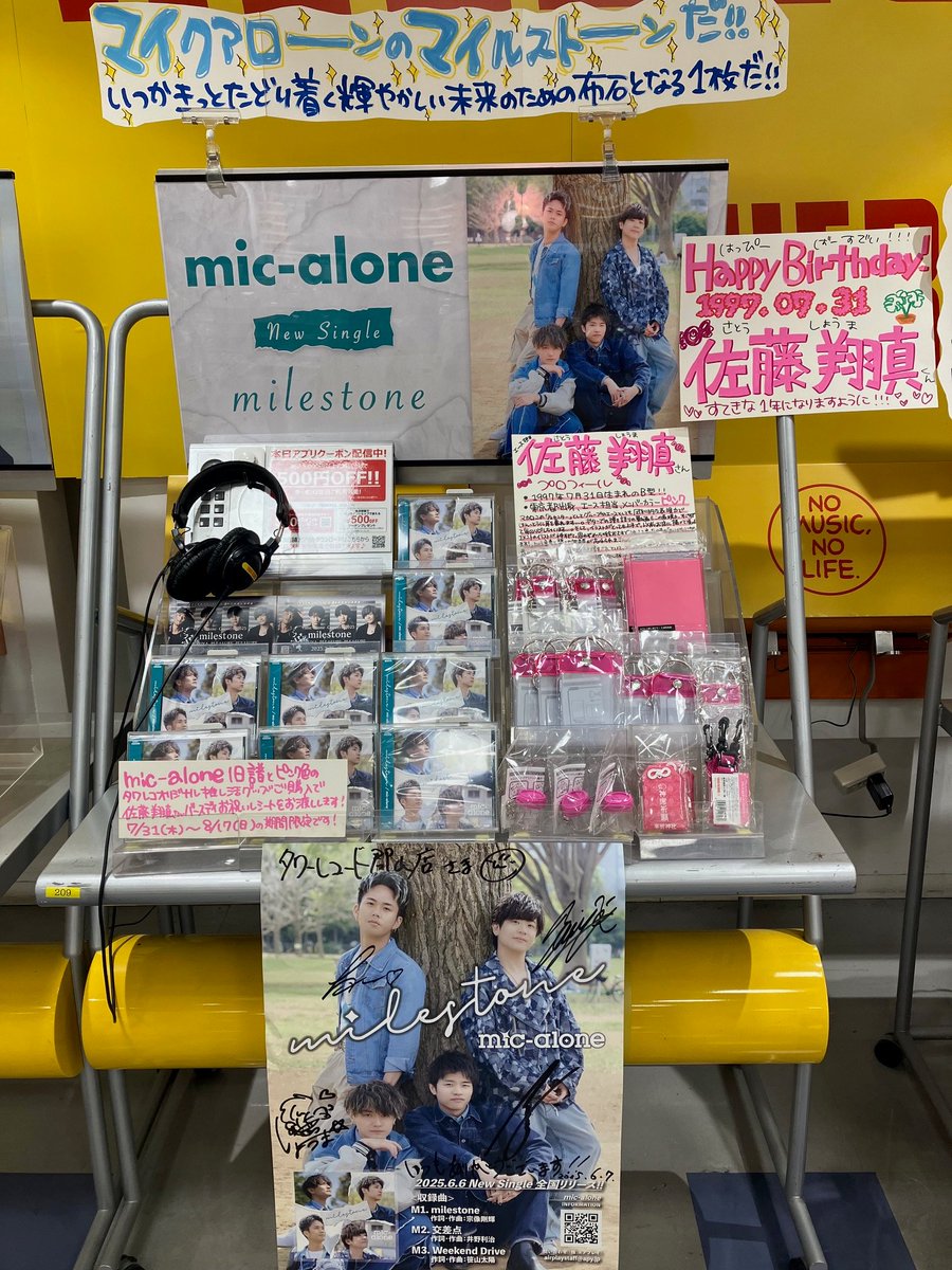 【mic-alone(@mic_alone_)】 \\記念レシートは本日まで💗// タワレコ郡山店では本日8/17(日)まで ‼️ #佐藤翔真 くん(@syomagoodnight)誕生日記念施策として記念レシートを発行中💕 ◆対象商品:mic-aloneのCD、ピンクの推し色グッズ▶️tower.jp/site/goods/rec… #マイクアローン