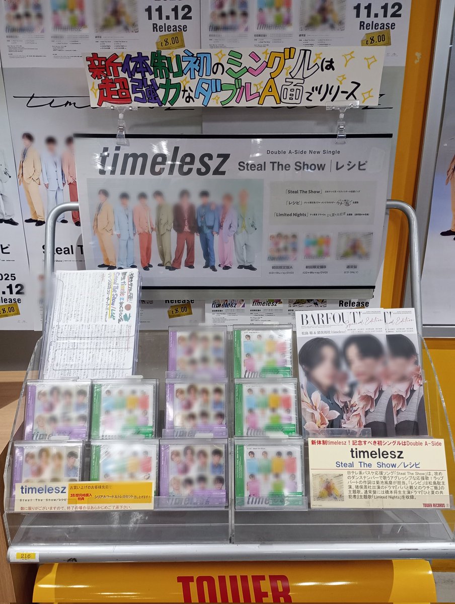 【#timelesz 】 🏀『Steal The Show/レシピ』🍳 大好評発売中☺ 通常盤のみ完売しました‼️ 他形態在庫ございます😊 ⚠️シリアルの登録期間は本日(11/16)まで! タワラブ!ポスターとソロポスターも掲出中です‼️ #TSZ在庫情報_STSxレシピ #timelesz_STSxレシピ