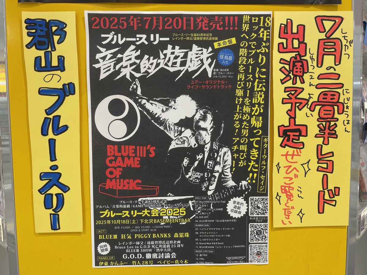 【#二畳半レコード】 本日しんや0時55分から📺 郡山店の油座店長も出演してます! ●フジロックにも出場した郡山市のミュージシャンBLUEIII初登場! 大病を乗り越え18年ぶりにアルバムリリース! 二畳半メンバーもブルースリーの怪鳥音を学ぶ! ●片平里菜、ゆべしスライブ情報!
