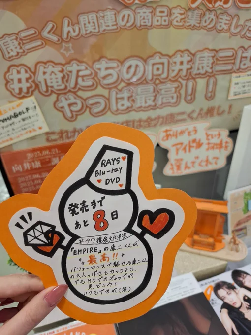 【#SnowMan】 🧡発売日まであと8⃣日🧡 LIVE Blu-ray&DVD 『Snow Man Dome Tour 2024 RAYS』6/25発売💎 x.gd/gt21kn 発売日までSnowMan推し店舗によるカウントダウン企画実施中✨ 本日は #向井康二 くん推し橿原店がご紹介🧡 #俺たちの向井康二はやっぱ最高 #タワレコ_SnowMan_RAYS