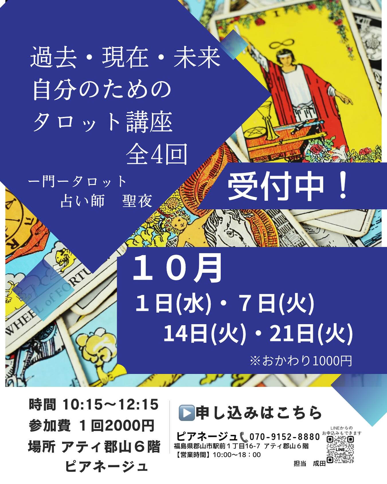 当店では、 タロットの先生をお呼びして タロット講座を行っております 第7回目 自分のためのタロット講座 10月のお日にち決定しました 初めてのお客様は1回2000円 以前受けて再度受講は、 おかわり1000円となります 興味のある方は、お気軽に 日程が合わないけど 気になってる方も気軽に問い合わせください お待ちしております ..𖥧 𖧧 ˒˒. 𖡼.𖤣𖥧 ⠜ . .𖥧 𖥧 𖧧 ˒˒. 𖡼.𖤣𖥧 ⠜ ワークショップして下さる 作家さま大募集中です ..𖥧 𖧧 ˒˒. 𖡼.𖤣𖥧 ⠜ . .𖥧 𖥧 𖧧 ˒˒. 𖡼.𖤣𖥧 ⠜ いいね️フォローを いただけますと、 大変励みになります。 〒963-8002 福島県郡山市駅前1丁目16-7 アティ郡山6階 ピアネージュ 10~18時 ..𖥧 𖧧 ˒˒. 𖡼.𖤣𖥧 ⠜ . .𖥧 𖥧 𖧧 ˒˒. 𖡼.𖤣𖥧 ⠜ #福島県 #郡山市 #pianeige #ピアネージュ #ピアネージュ郡山 #アティ郡山 #Ati郡山 #ハンドメイド #委託販売 #レンタルボックス #雑貨屋 #郡山雑貨屋 #レンタルスペース
