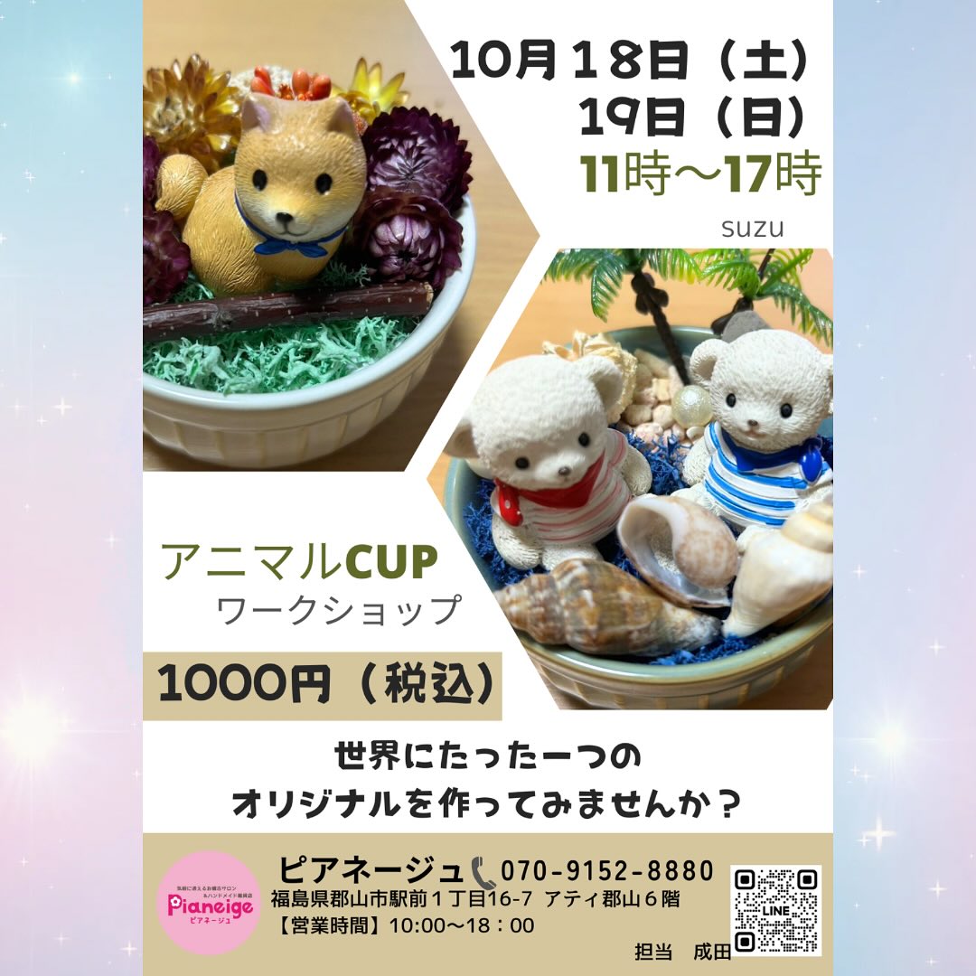 【ワークショップ情報】 作家さまによる ワークショップがあります! お気軽にDMでお問い合わせ お待ちしております ..𖥧 𖧧 ˒˒. 𖡼.𖤣𖥧 ⠜ . .𖥧 𖥧 𖧧 ˒˒. 𖡼.𖤣𖥧 ⠜ ワークショップして下さる 作家さま大募集中です ..𖥧 𖧧 ˒˒. 𖡼.𖤣𖥧 ⠜ . .𖥧 𖥧 𖧧 ˒˒. 𖡼.𖤣𖥧 ⠜ いいね️フォローを いただけますと、 大変励みになります。 〒963-8002 福島県郡山市駅前1丁目16-7 アティ郡山6階 ピアネージュ 10~18時 ..𖥧 𖧧 ˒˒. 𖡼.𖤣𖥧 ⠜ . .𖥧 𖥧 𖧧 ˒˒. 𖡼.𖤣𖥧 ⠜ #福島県 #郡山市 #pianeige #ピアネージュ #ピアネージュ郡山 #アティ郡山 #Ati郡山 #ハンドメイド #委託販売 #レンタルボックス #雑貨屋 #郡山雑貨屋 #レンタルスペース