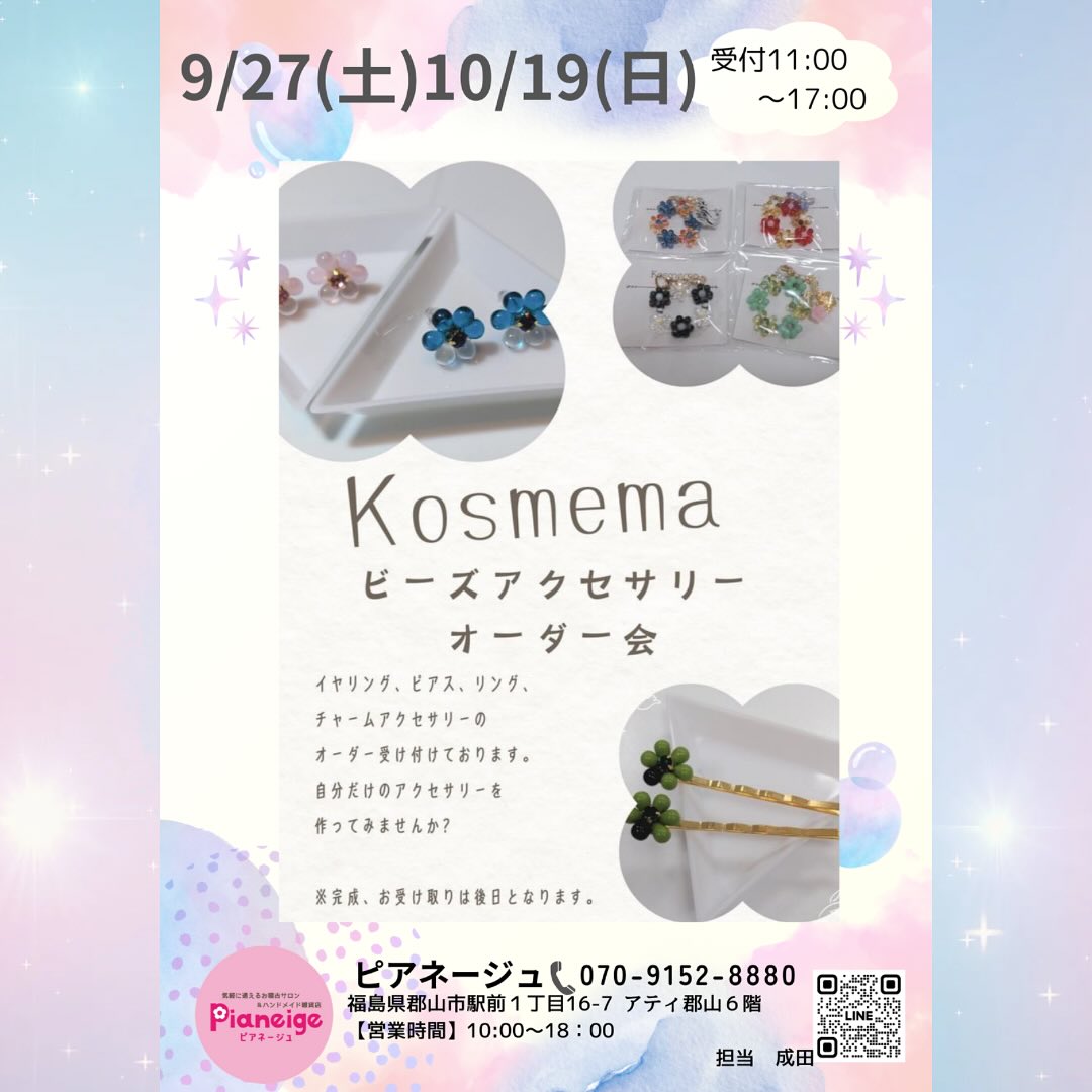 【ワークショップ情報】 @mari_kosmema 作家さまによる ワークショップがあります! お気軽にDMでお問い合わせ お待ちしております ..𖥧 𖧧 ˒˒. 𖡼.𖤣𖥧 ⠜ . .𖥧 𖥧 𖧧 ˒˒. 𖡼.𖤣𖥧 ⠜ ワークショップして下さる 作家さま大募集中です ..𖥧 𖧧 ˒˒. 𖡼.𖤣𖥧 ⠜ . .𖥧 𖥧 𖧧 ˒˒. 𖡼.𖤣𖥧 ⠜ いいね️フォローを いただけますと、 大変励みになります。 〒963-8002 福島県郡山市駅前1丁目16-7 アティ郡山6階 ピアネージュ 10~18時不 ..𖥧 𖧧 ˒˒. 𖡼.𖤣𖥧 ⠜ . .𖥧 𖥧 𖧧 ˒˒. 𖡼.𖤣𖥧 ⠜ #福島県 #郡山市 #pianeige #ピアネージュ #ピアネージュ郡山 #アティ郡山 #Ati郡山 #ハンドメイド #委託販売 #レンタルボックス #雑貨屋 #郡山雑貨屋 #レンタルスペース