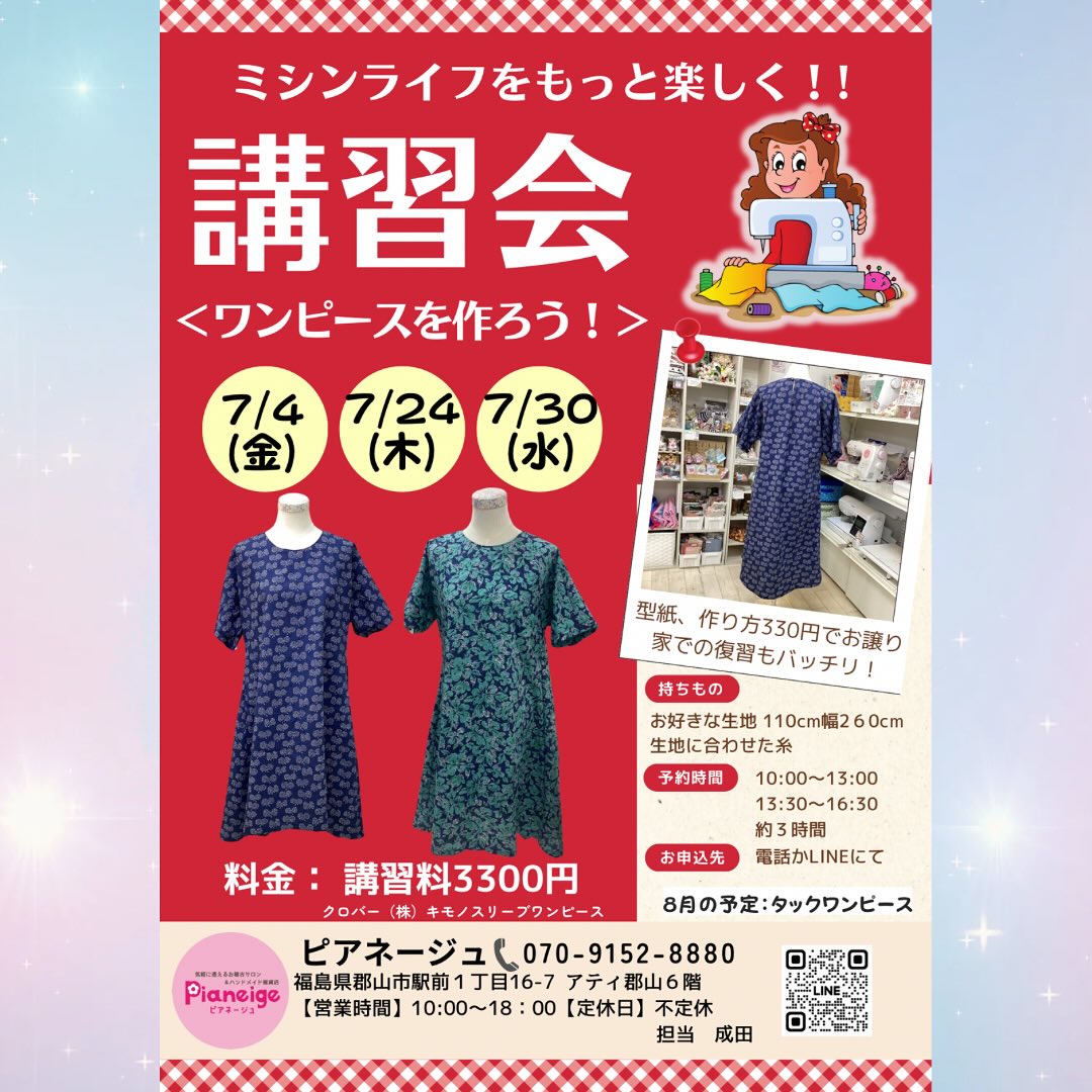 7月のミシン講習会の お知らせです- ̗̀ 気軽に参加お待ちしております