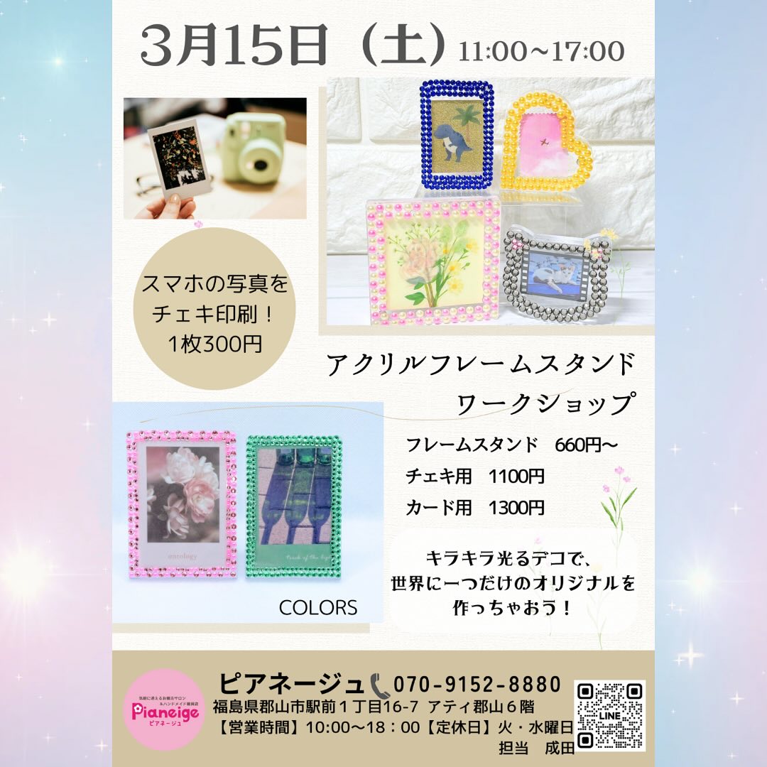 【ワークショップ情報】 @colors_beads_accessary 作家さまによる ワークショップがあります! お気軽にDMでお問い合わせ お待ちしております ..𖥧 𖧧 ˒˒. 𖡼.𖤣𖥧 ⠜ . .𖥧 𖥧 𖧧 ˒˒. 𖡼.𖤣𖥧 ⠜ ワークショップして下さる 作家さま大募集中です ..𖥧 𖧧 ˒˒. 𖡼.𖤣𖥧 ⠜ . .𖥧 𖥧 𖧧 ˒˒. 𖡼.𖤣𖥧 ⠜ いいね️フォローを いただけますと、 大変励みになります。 〒963-8002 福島県郡山市駅前1丁目16-7 アティ郡山6階 ピアネージュ 10~18時(火水は定休日) ..𖥧 𖧧 ˒˒. 𖡼.𖤣𖥧 ⠜ . .𖥧 𖥧 𖧧 ˒˒. 𖡼.𖤣𖥧 ⠜ #福島県 #郡山市 #pianeige #ピアネージュ #ピアネージュ郡山 #アティ郡山 #Ati郡山 #ハンドメイド #委託販売 #レンタルボックス #雑貨屋 #郡山雑貨屋 #レンタルスペース