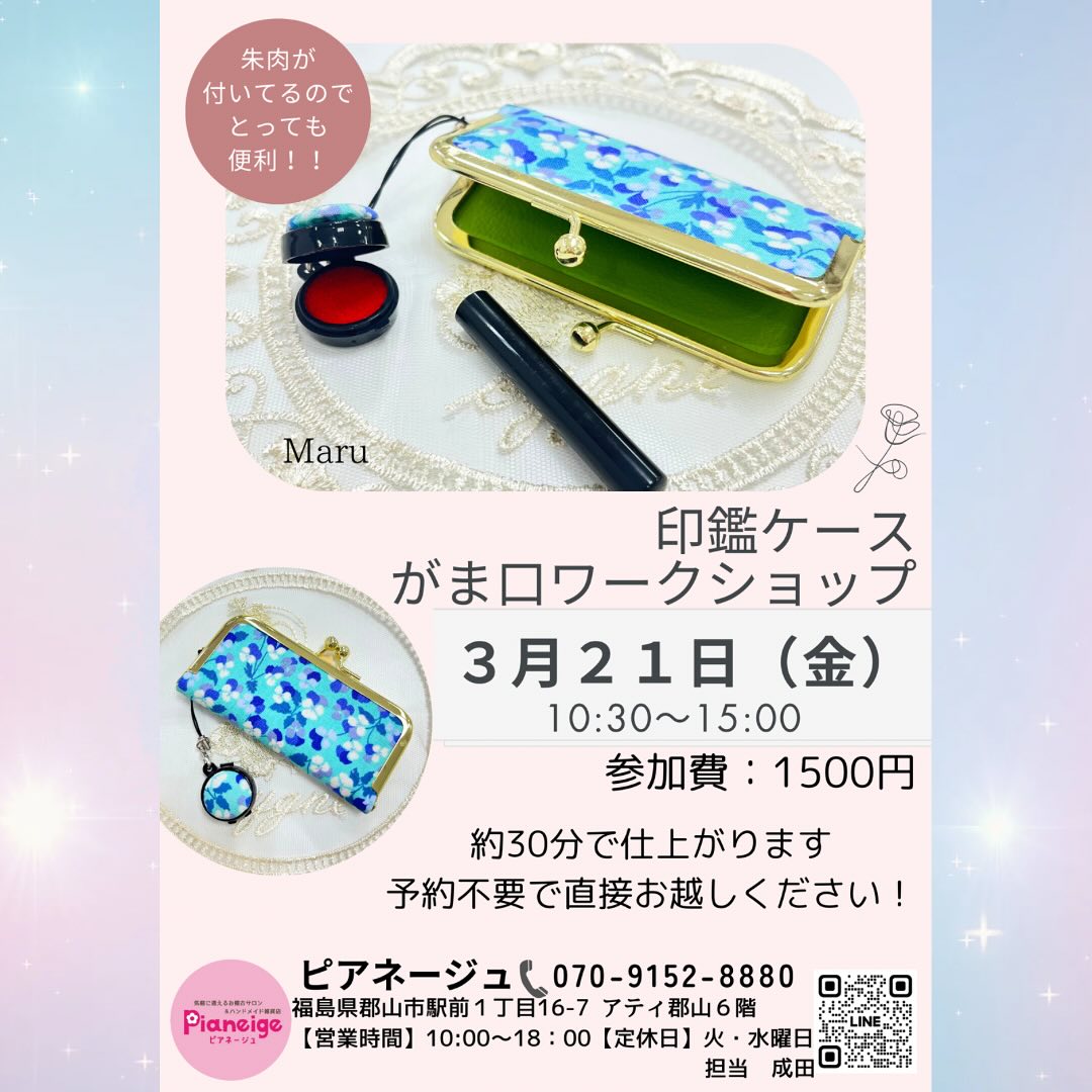 【ワークショップ情報】 @masumi.kaneko 作家さまによる ワークショップがあります! お気軽にDMでお問い合わせ お待ちしております ..𖥧 𖧧 ˒˒. 𖡼.𖤣𖥧 ⠜ . .𖥧 𖥧 𖧧 ˒˒. 𖡼.𖤣𖥧 ⠜ ワークショップして下さる 作家さま大募集中です ..𖥧 𖧧 ˒˒. 𖡼.𖤣𖥧 ⠜ . .𖥧 𖥧 𖧧 ˒˒. 𖡼.𖤣𖥧 ⠜ いいね️フォローを いただけますと、 大変励みになります。 〒963-8002 福島県郡山市駅前1丁目16-7 アティ郡山6階 ピアネージュ 10~18時(火水は定休日) ..𖥧 𖧧 ˒˒. 𖡼.𖤣𖥧 ⠜ . .𖥧 𖥧 𖧧 ˒˒. 𖡼.𖤣𖥧 ⠜ #福島県 #郡山市 #pianeige #ピアネージュ #ピアネージュ郡山 #アティ郡山 #Ati郡山 #ハンドメイド #委託販売 #レンタルボックス #雑貨屋 #郡山雑貨屋 #レンタルスペース