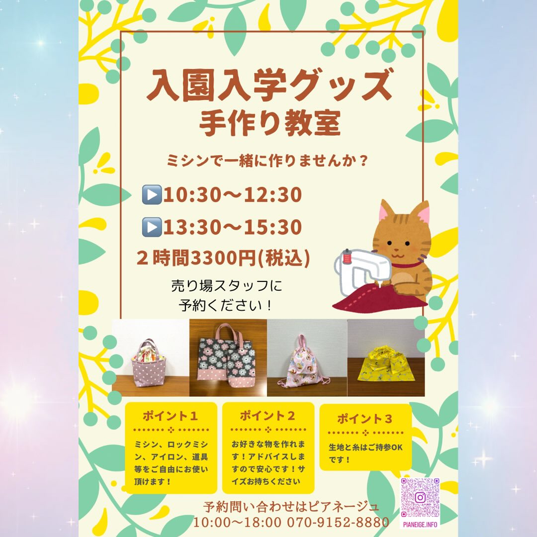 入園入学グッズ作りませんか? 自分で作るのが大変 と、悩んでいる方は ぜひ連絡ください 一緒に作りましょう ぱぱっと終わらせて 入園入学を楽しみに待ちましょう 随時募集中 1時間 1650円 ..𖥧 𖧧 ˒˒. 𖡼.𖤣𖥧 ⠜ . .𖥧 𖥧 𖧧 ˒˒. 𖡼.𖤣𖥧 ⠜ いいね️フォローを いただけますと、 大変励みになります。 〒963-8002 福島県郡山市駅前1丁目16-7 アティ郡山6階 ピアネージュ 10~18時(火水は定休日) ..𖥧 𖧧 ˒˒. 𖡼.𖤣𖥧 ⠜ . .𖥧 𖥧 𖧧 ˒˒. 𖡼.𖤣𖥧 ⠜ #福島県 #郡山市 #pianeige #ピアネージュ #ピアネージュ郡山 #アティ郡山 #Ati郡山 #ハンドメイド #委託販売 #レンタルボックス #雑貨屋 #郡山雑貨屋 #レンタルスペース #ミシン教室 #ソーイングレッスン #入園準備 #入学準備