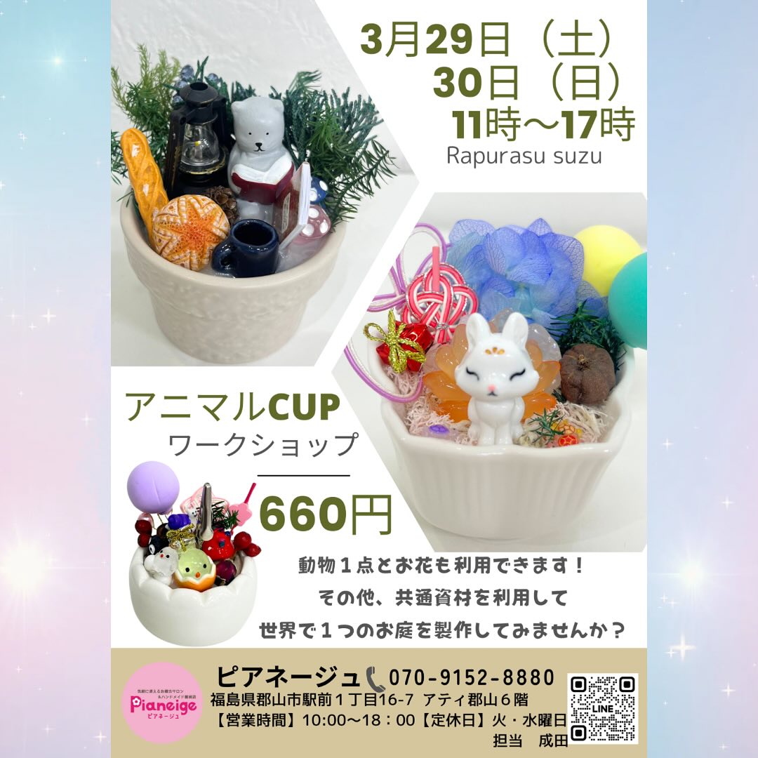 【ワークショップ情報】 @sora_neko0110 作家さまによる ワークショップがあります! お気軽にDMでお問い合わせ お待ちしております ..𖥧 𖧧 ˒˒. 𖡼.𖤣𖥧 ⠜ . .𖥧 𖥧 𖧧 ˒˒. 𖡼.𖤣𖥧 ⠜ ワークショップして下さる 作家さま大募集中です ..𖥧 𖧧 ˒˒. 𖡼.𖤣𖥧 ⠜ . .𖥧 𖥧 𖧧 ˒˒. 𖡼.𖤣𖥧 ⠜ いいね️フォローを いただけますと、 大変励みになります。 〒963-8002 福島県郡山市駅前1丁目16-7 アティ郡山6階 ピアネージュ 10~18時(火水は定休日) ..𖥧 𖧧 ˒˒. 𖡼.𖤣𖥧 ⠜ . .𖥧 𖥧 𖧧 ˒˒. 𖡼.𖤣𖥧 ⠜ #福島県 #郡山市 #pianeige #ピアネージュ #ピアネージュ郡山 #アティ郡山 #Ati郡山 #ハンドメイド #委託販売 #レンタルボックス #雑貨屋 #郡山雑貨屋 #レンタルスペース