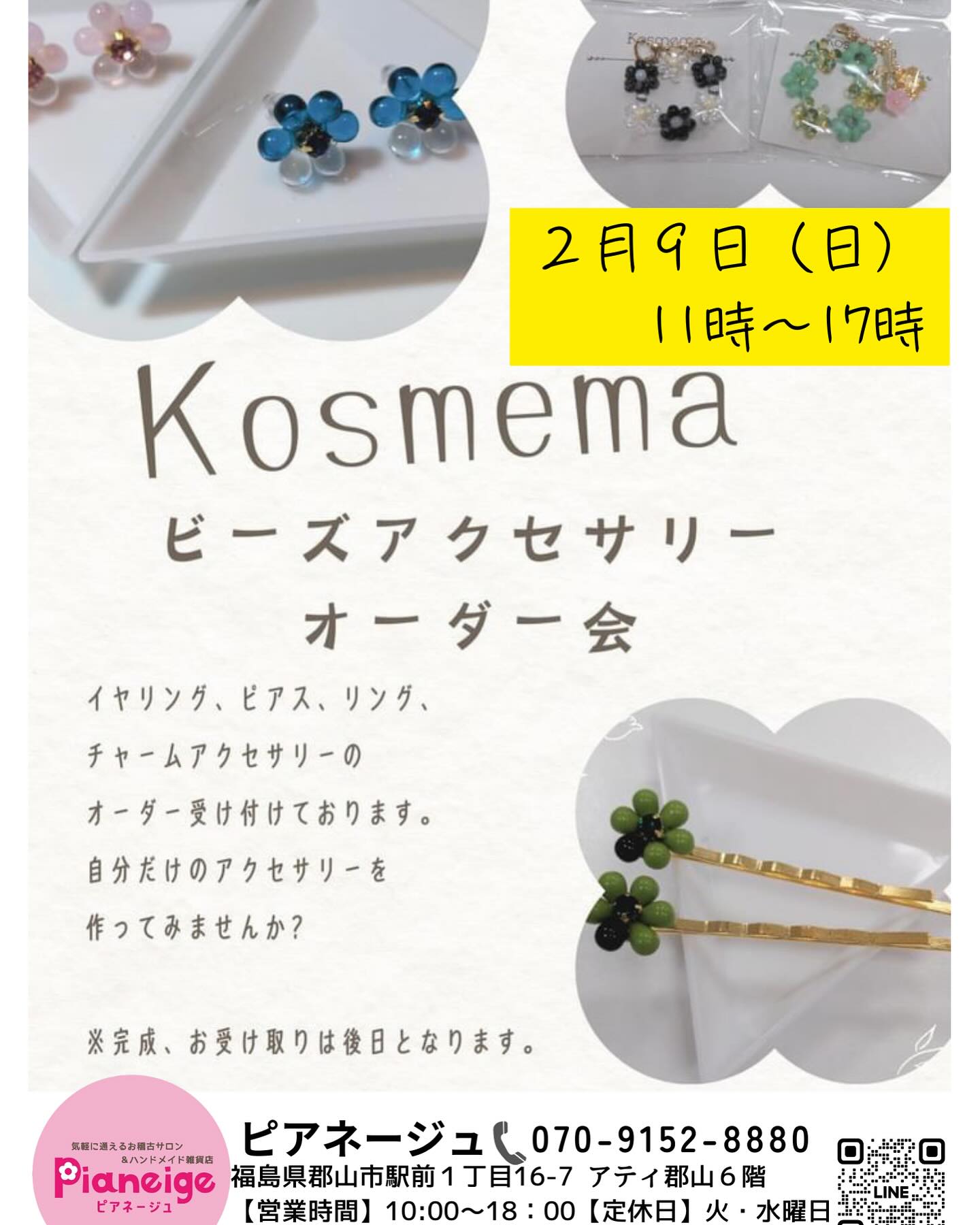 【オーダー会 情報】 @mari_kosmema 作家さまによる オーダー会があります! お気軽にDMでお問い合わせ お待ちしております ..𖥧 𖧧 ˒˒. 𖡼.𖤣𖥧 ⠜ . .𖥧 𖥧 𖧧 ˒˒. 𖡼.𖤣𖥧 ⠜ ワークショップして下さる 作家さま大募集中です ..𖥧 𖧧 ˒˒. 𖡼.𖤣𖥧 ⠜ . .𖥧 𖥧 𖧧 ˒˒. 𖡼.𖤣𖥧 ⠜ いいね️フォローを いただけますと、 大変励みになります。 〒963-8002 福島県郡山市駅前1丁目16-7 アティ郡山6階 ピアネージュ 10~18時(火水は定休日) ..𖥧 𖧧 ˒˒. 𖡼.𖤣𖥧 ⠜ . .𖥧 𖥧 𖧧 ˒˒. 𖡼.𖤣𖥧 ⠜ #福島県 #郡山市 #pianeige #ピアネージュ #ピアネージュ郡山 #アティ郡山 #Ati郡山 #ハンドメイド #委託販売 #レンタルボックス #雑貨屋 #郡山雑貨屋 #レンタルスペース