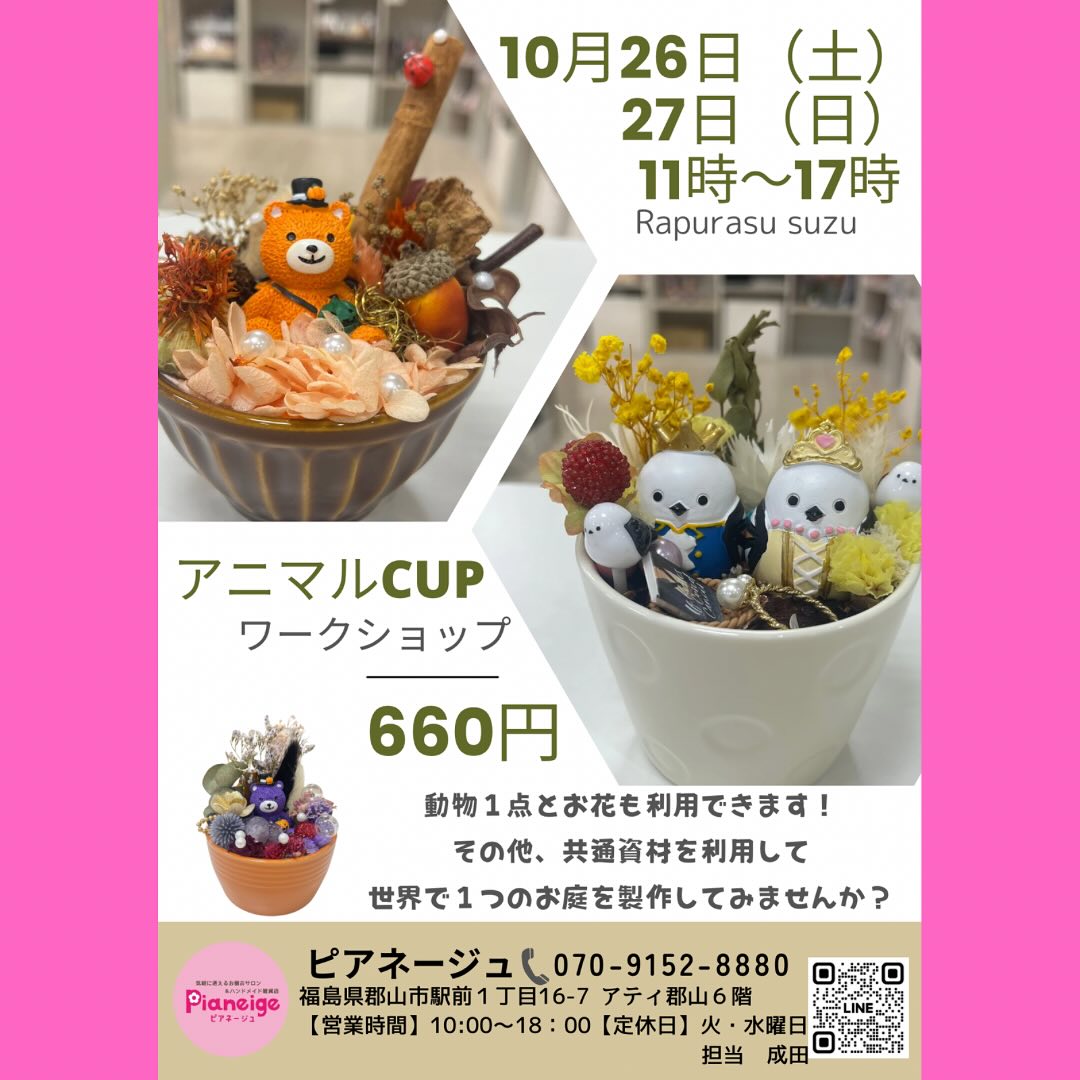 【ワークショップ情報】 @shell_21230 作家さまによる ワークショップがあります❣️ アニマルcupワークショップ 〈予約不要〉 1つ660円 動物2点お花1点を利用できます! その他、共有資材を利用して 世界で1つの置物を製作してみませんか? お気軽にDMでお問い合わせ お待ちしております ..𖥧 𖧧 ˒˒. 𖡼.𖤣𖥧 ⠜ . .𖥧 𖥧 𖧧 ˒˒. 𖡼.𖤣𖥧 ⠜ ワークショップして下さる 作家さま大募集中です ..𖥧 𖧧 ˒˒. 𖡼.𖤣𖥧 ⠜ . .𖥧 𖥧 𖧧 ˒˒. 𖡼.𖤣𖥧 ⠜ 〒963-8002 福島県郡山市駅前1丁目16-7 ATi郡山6階 Pianeigeピアネージュ 10~18時(火水は定休日)