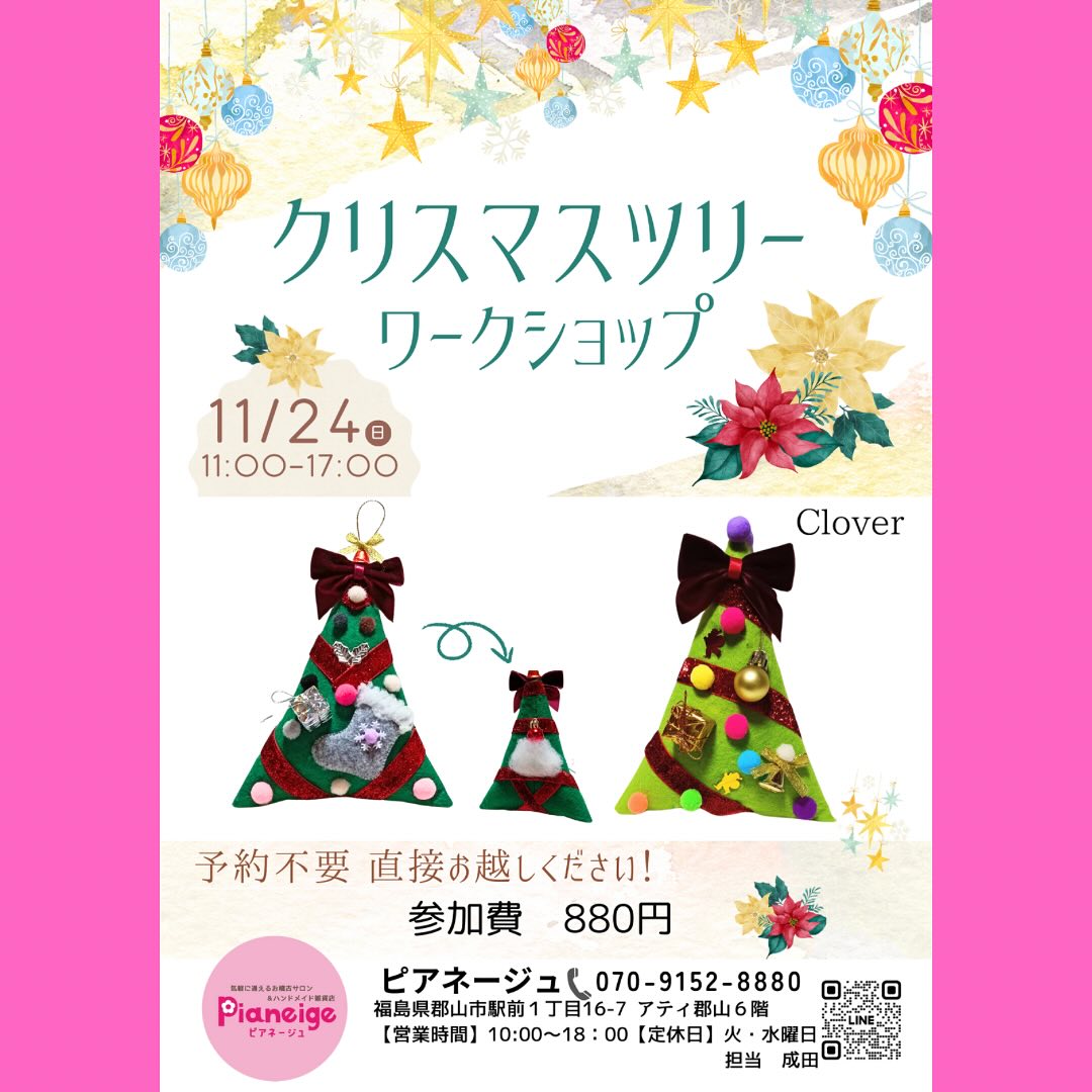【ワークショップ情報】 @clover_hiromi クリスマスツリーのワークショップ 11:00~17:00 1つ880円 予約不要です 直接、お店にお越しくださいませ 〒963-8002 福島県郡山市駅前1丁目16-7 ATi郡山6階 Pianeigeピアネージュ 営業時間10~18時(火水は定休日) 電話 070-9152-8880