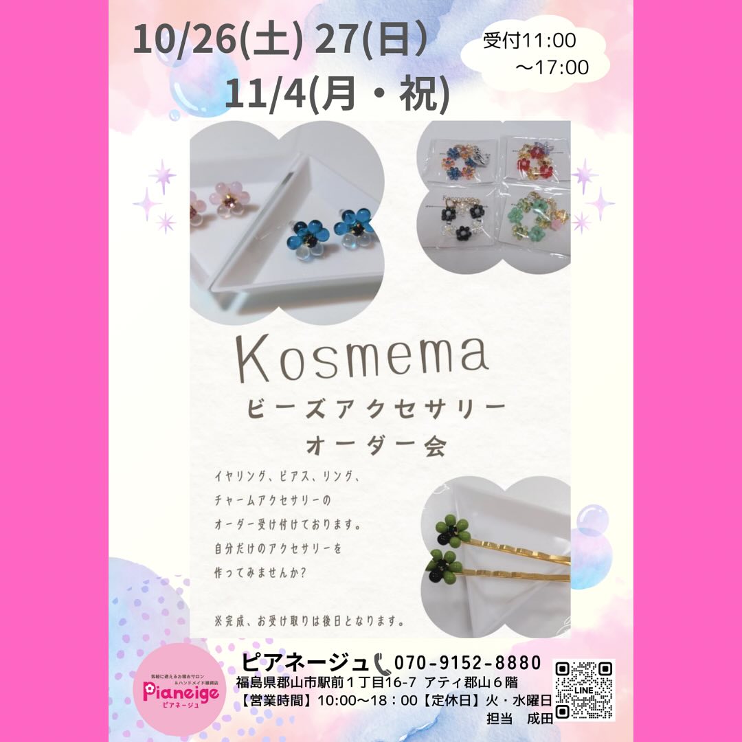 【ワークショップ情報】 @mari_kosmema 作家さまによる チェコビーズオーダー会があります❣️ 〈予約不要〉 沢山のチェコビーズからカラーを選び オリジナルの アクセサリーにオーダー出来ます キラキラ可愛いチェコビーズを 直接ご覧ください ※デザインは作家さまにご確認下さい お渡しは 作家さまが仕上げて後日お店での お渡しになります お気軽にDMでお問い合わせ お待ちしております ..𖥧 𖧧 ˒˒. 𖡼.𖤣𖥧 ⠜ . .𖥧 𖥧 𖧧 ˒˒. 𖡼.𖤣𖥧 ⠜ ワークショップして下さる 作家さま大募集中です ..𖥧 𖧧 ˒˒. 𖡼.𖤣𖥧 ⠜ . .𖥧 𖥧 𖧧 ˒˒. 𖡼.𖤣𖥧 ⠜ 〒963-8002 福島県郡山市駅前1丁目16-7 ATi郡山6階 Pianeigeピアネージュ 10~18時(火水は定休日)