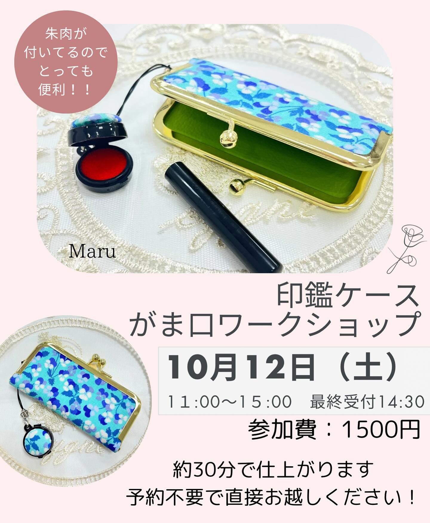 【ワークショップ情報】 @masumi.kaneko がま口のワークショップ 印鑑ケースを作ります*゜ 10/12(土)11:00~15:00 最終受付14:30 参加費1500円 《予約不要》 約30分で仕上がります ハンコが2本入ります 朱肉が付いていてとっても便利 自分用にもお友達や家族の プレゼントにもオススメです 予約不要です 直接、お店にお越しくださいませ 〒963-8002 福島県郡山市駅前1丁目16-7 ATi郡山6階 Pianeigeピアネージュ 営業時間10~18時(火水は定休日) 電話 070-9152-8880