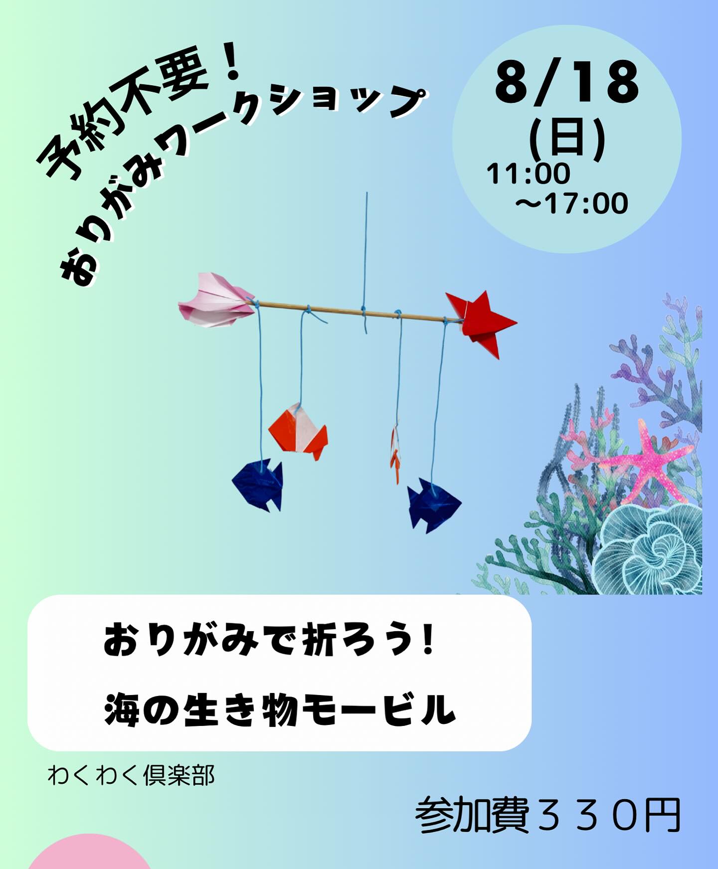 【ワークショップ情報】 作家さまによる ワークショップがあります❣️ おりがみワークショップ 8/18(日)11:00~17:00 参加費 330円 おりがみで海の生き物を折ってみませんか? モービルにして飾れるように仕上がります 小さなお子様も先生が丁寧に ご指導下さいます 気軽に参加下さい 予約不要ですので 直接売場にお越しください 〒963-8002 福島県郡山市駅前1丁目16-7 ATi郡山6階 Pianeigeピアネージュ 営業時間10~18時(火水は定休日) 予約電話 070-9152-8880