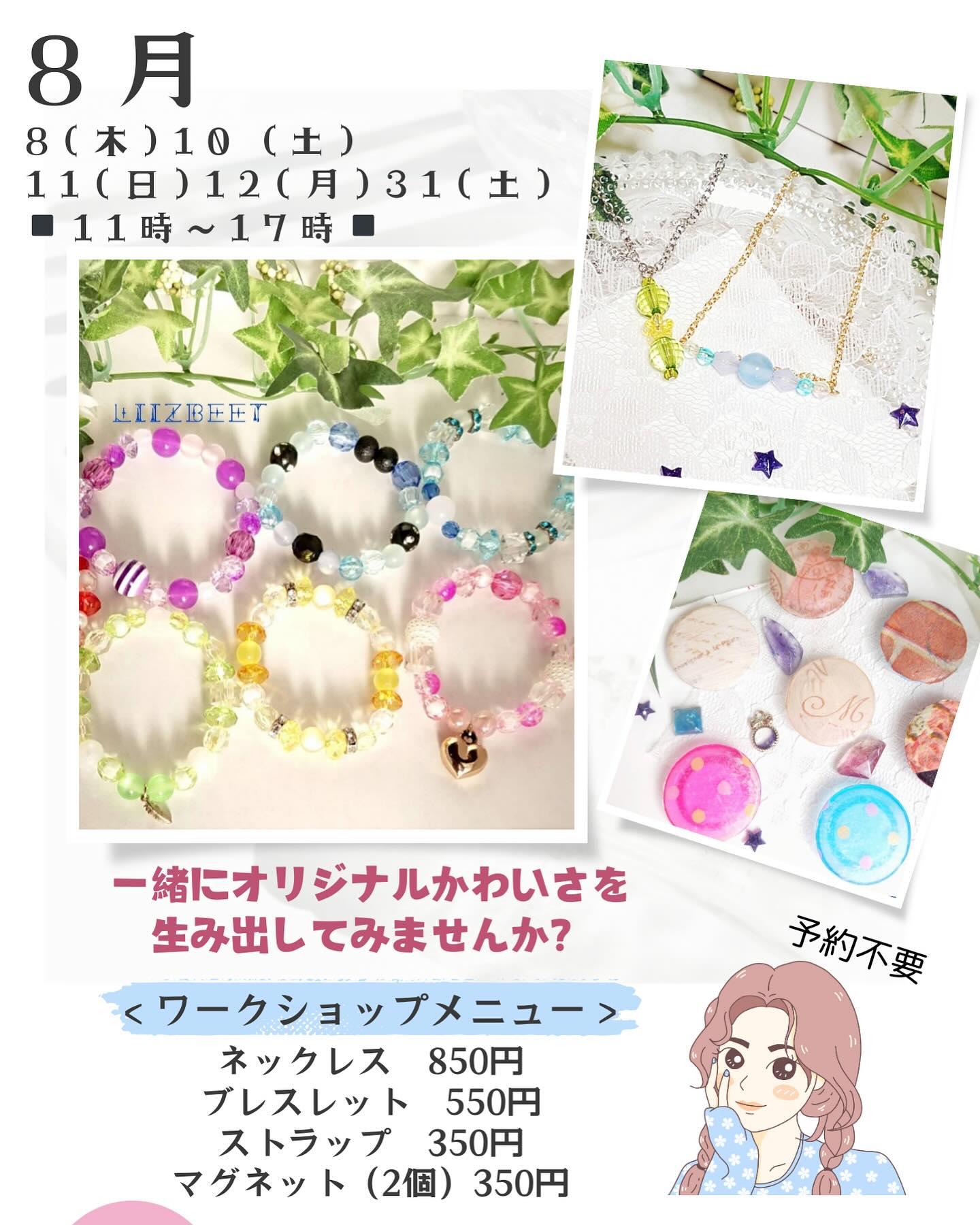 【ワークショップ情報】 @liizbeet 作家さまによる ワークショップがあります❣️ ビーズアクセサリーワークショップ! ︎ワークショップメニュー︎ ネックレス 850円 ブレスレット 550円 ストラップ 350円 マグネット2個 350円 一緒にオリジナルかわいいさを 生み出してみませんか? お子様から大人の方まで楽しんで頂けます 予約不要ですので 直接売場にお越しください 〒963-8002 福島県郡山市駅前1丁目16-7 ATi郡山6階 Pianeigeピアネージュ 営業時間10~18時(火水は定休日) 予約電話 070-9152-8880
