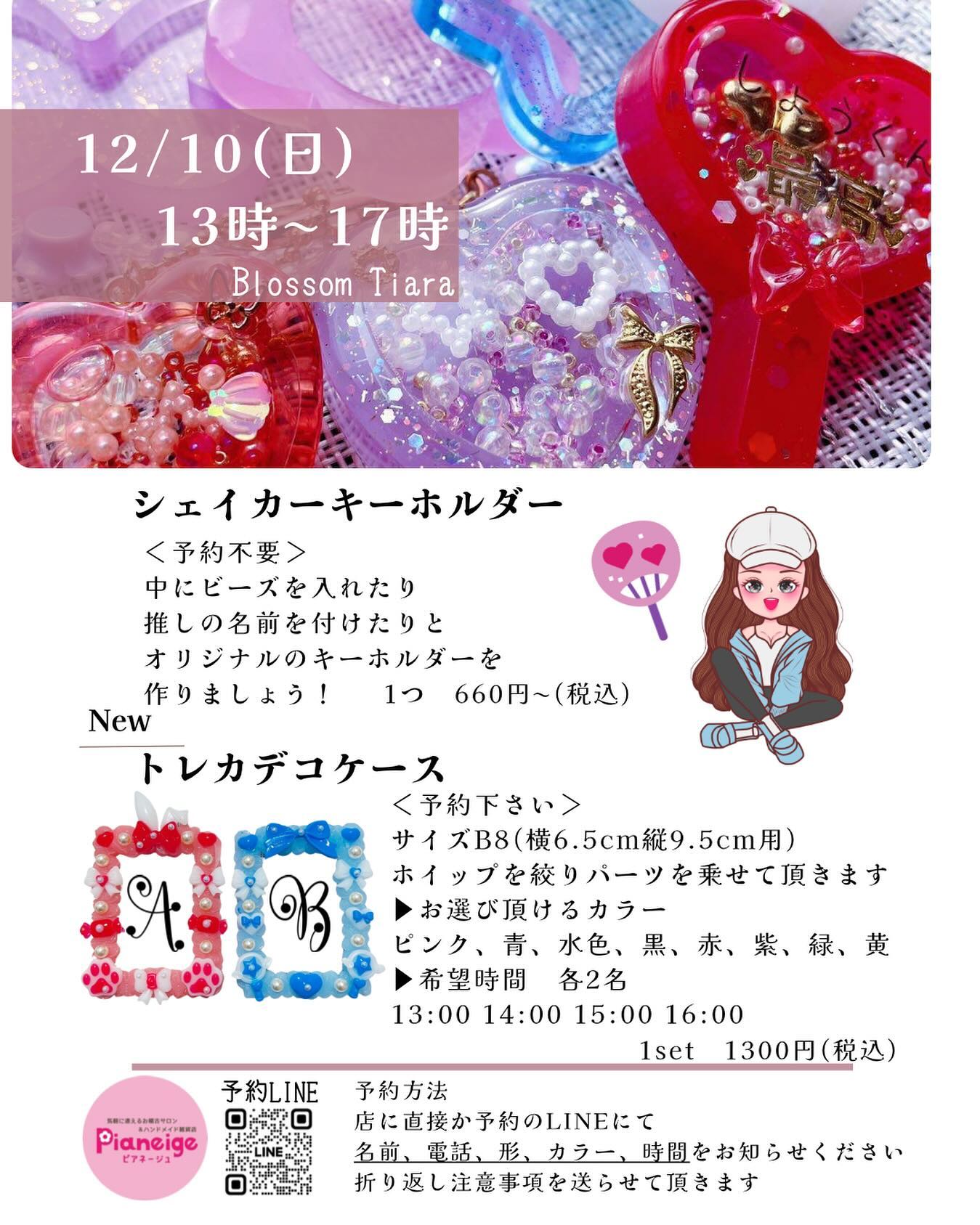 【ワークショップ情報】 @blos_somtiara 12/10(日)13:00~17:00 作家さまによる ワークショップがあります❣️ 人気のシェイカーキーホルダーは 〈予約不要〉 1つ660円〜 中にビーズを入れたり 推しの名前を付けたり オリジナルのキーホルダーを作りましょう❣️ トレカデコケース 〈予約下さい〉 ホイップを絞りパーツを乗せていただきます 15:00 16:00 予約可能です ぜひこの機会にトレカデコケース 体験ください お気軽にDMでお問い合わせ お待ちしております ..𖥧 𖧧 ˒˒. 𖡼.𖤣𖥧 ⠜ . .𖥧 𖥧 𖧧 ˒˒. 𖡼.𖤣𖥧 ⠜ 新規オーナーさまも大募集中です ..𖥧 𖧧 ˒˒. 𖡼.𖤣𖥧 ⠜ . .𖥧 𖥧 𖧧 ˒˒. 𖡼.𖤣𖥧 ⠜ いいね️フォローを いただけますと、 大変励みになります。 〒963-8002 福島県郡山市駅前1丁目16-7 ATi郡山6階 Pianeige️ピアネージュ 10~18時(月火は定休日) ..𖥧 𖧧 ˒˒. 𖡼.𖤣𖥧 ⠜ . .𖥧 𖥧 𖧧 ˒˒. 𖡼.𖤣𖥧 ⠜ #福島県 #郡山市 #pianeige #ピアネージュ #ピアネージュ郡山 #アティ郡山 #Ati郡山 #ハンドメイド #委託販売 #レンタルボックス #雑貨屋 #郡山雑貨屋 #レンタルスペース