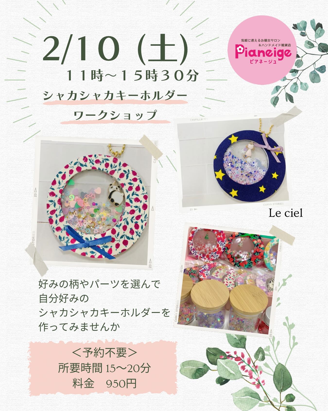 【ワークショップ情報】 @ami_maaru 2/10(土)11:00~15:30 作家さまによる ワークショップがあります❣️ シャカシャカキーホルダーは 〈予約不要〉でお作り頂けます❣️ リボンやビーズ、チャームなど オリジナルチャームを作りましょう 可愛いので ぜひ作りにいらして下さい 950円 お気軽にDMでお問い合わせ お待ちしております ..𖥧 𖧧 ˒˒. 𖡼.𖤣𖥧 ⠜ . .𖥧 𖥧 𖧧 ˒˒. 𖡼.𖤣𖥧 ⠜ 新規オーナーさまも大募集中です ..𖥧 𖧧 ˒˒. 𖡼.𖤣𖥧 ⠜ . .𖥧 𖥧 𖧧 ˒˒. 𖡼.𖤣𖥧 ⠜ いいね️フォローを いただけますと、 大変励みになります。 〒963-8002 福島県郡山市駅前1丁目16-7 ATi郡山6階 Pianeige️ピアネージュ 10~18時(月火は定休日) ..𖥧 𖧧 ˒˒. 𖡼.𖤣𖥧 ⠜ . .𖥧 𖥧 𖧧 ˒˒. 𖡼.𖤣𖥧 ⠜ #福島県 #郡山市 #pianeige #ピアネージュ #ピアネージュ郡山 #アティ郡山 #Ati郡山 #ハンドメイド #委託販売 #レンタルボックス #雑貨屋 #郡山雑貨屋 #レンタルスペース @atikoriyama @pinky_2019_