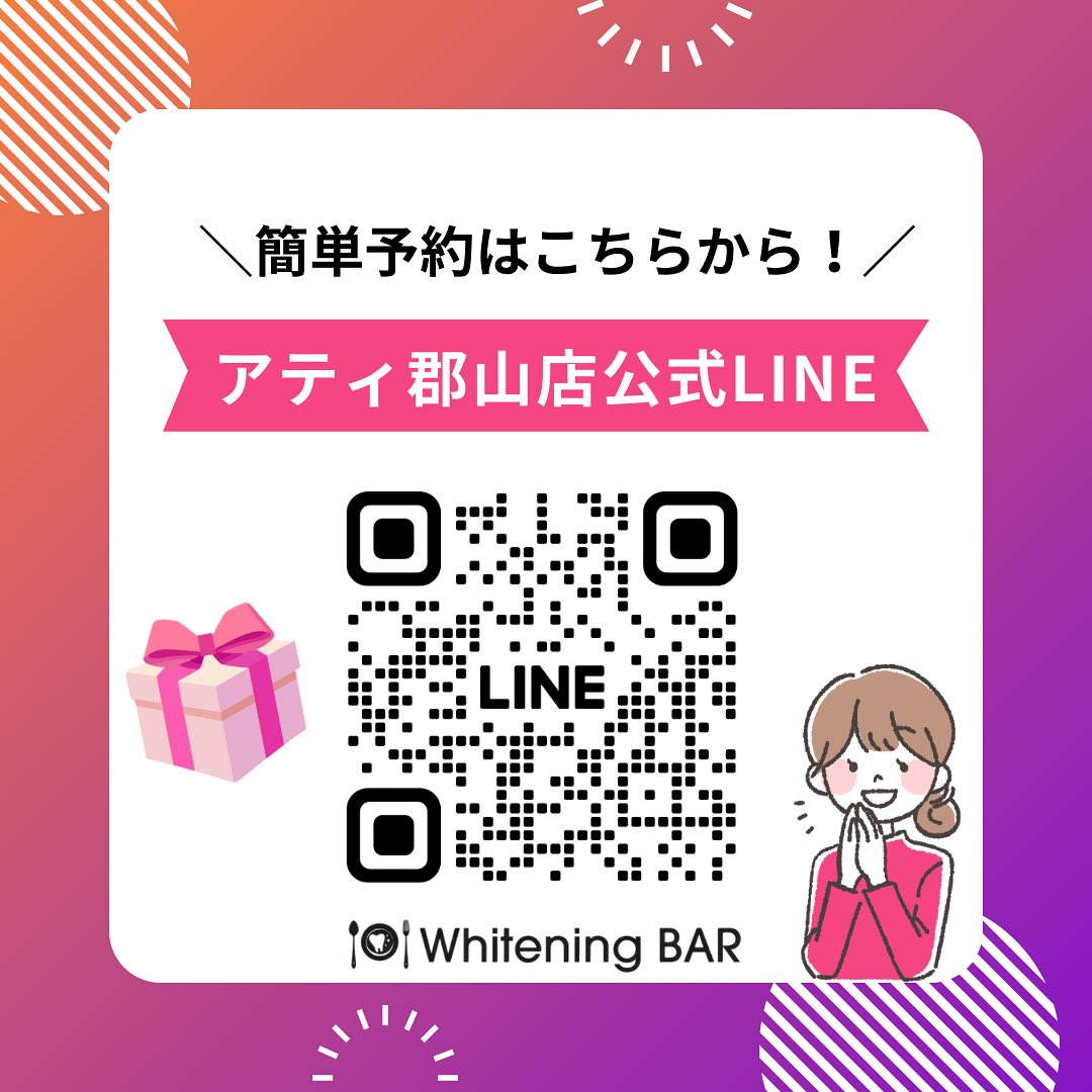 ︎ ホワイトニングバーアティ郡山店からお知らせ もっと便利にもっと簡単に 当店の【公式LINE】ができました! 「予約したいけど電話するのはちょっと…」「空き状況をサクッと知りたい」そんな声にお応えして、公式LINEを開設しました🦷 LINEなら、簡単にご予約やお問い合わせができます ぜひこの機会に、ホワイトニングバーアティ郡山店公式LINEの友だち追加してみてください ——————————————— ——————————————— ホワイトニングバー アティ郡山店 〒963-8002 福島県郡山市駅前1丁目16-7 アティ郡山6階 024-954-5656 営業時間:10:00〜20:00 ——————————————— ——————————————— 白い歯は第一印象をぐっと引き上げます🪞 「痛くない」「リーズナブル」「当日予約OK」で通いやすさも人気の理由 お友達やカップルでの来店も大歓迎です👭 ⸻ #ホワイトニング #セルフホワイトニング #ホワイトニング福島 #ホワイトニング郡山 #アティ郡山 #歯のホワイトニング #ホワイトニングサロン #ホワイトニングバー #whiteningbar #白い歯 #痛くないホワイトニング #郡山市 #郡山駅 #郡山駅周辺 #美容 #自分磨き #メンズにも人気 #ブライダル #カップル #友達同士 #当日予約OK #キャンペーン #リーズナブル #格安クーポン #施術効果 #施術写真