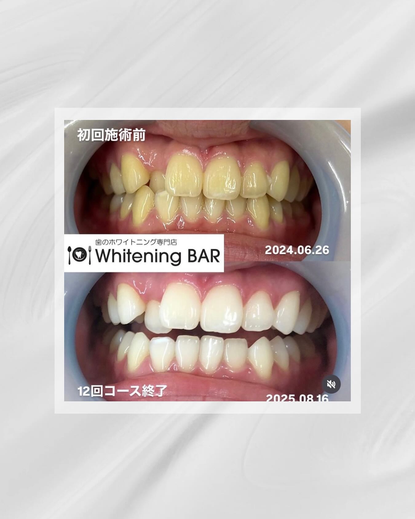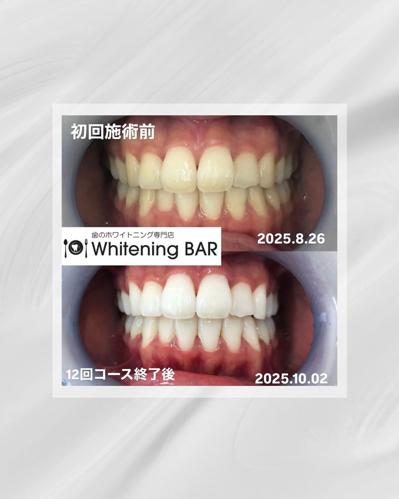 ︎︎ ︎︎ 🦷【ホワイトニング経過ビフォーアフター】🦷 ✿お写真は、ホワイトニング初回時と 12回コース終了後の歯のお色になります! パッと見ただけで白さが一目瞭然ですよね🤍 どうしても長年の着色汚れは1回では落としきれないこともありますが、数回通ってケアを続けていただくことで、本来の永久歯の白さに戻していくことができます よくいただくご質問 「どのくらいのペースで通えばいいですか?」 最初の4〜5回は《2週間に1回》のペースがおすすめ! お色戻りする前に重ねてケアすることで、効率よく理想の白さへ導きます🦷 お仕事や予定で少し間が空いてしまう方は、当店オリジナル歯磨き粉を使っていただくと、着色を防いでくれるのでとってもおすすめです🪥 気になることがありましたらいつでもスタッフにご相談ください #ホワイトニング #セルフホワイトニング #ホワイトニング福島 #ホワイトニング郡山 #アティ郡山 #歯のホワイトニング #ホワイトニングサロン #ホワイトニングバー #whiteningbar #白い歯 #痛くないホワイトニング #郡山市 #郡山駅 #郡山駅周辺 #美容 #自分磨き #メンズにも人気 #歯磨き粉 #ブライダル #カップル #友達同士 #当日予約OK #キャンペーン #リーズナブル #格安クーポン #施術効果 #施術写真