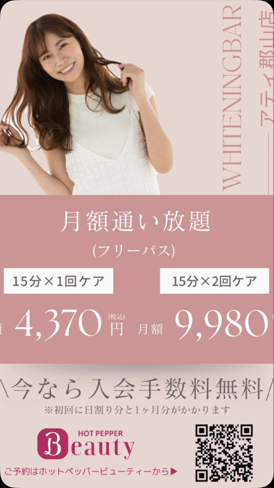 ︎ こんにちは! WhiteningBARアティ郡山店です🍽 当店では回数券の他に 通い放題と通いSPをご用意しております🏻✍🏻 通い放題は月額4,370円、通いSPは月額9,980円になります🧸𖤐⡱ また、通い放題は1日1回15分照射、通いSPは1日2回30分照射になっております.ᐟ.ᐟ️ ※通い放題契約をお考えの方※ 通い放題は口座引き落としとさせて頂いている為、契約時に必ず引き落とし口座のキャッシュカードをご持参ください️ また、退会の関しましては申請は2か月前となっております。 (例:7月退会希望の方は、5月末までに退会手続き) 必ず契約店舗にて退会届けの提出お願い致します ——————————————— ——————————————— ホワイトニングバーアティ郡山店 〒963-8002 福島県郡山市駅前1丁目16-7 アティ郡山6階 TEL:024-954-5656 営業時間:10:00〜20:00 ——————————————— ——————————————— #ホワイトニング #セルフホワイトニング #ホワイトニング福島 #ホワイトニング郡山 #アティ郡山 #歯のホワイトニング #ホワイトニングサロン #ホワイトニングバー #whiteningbar #白い歯 #痛くないホワイトニング #郡山市 #郡山駅 #郡山駅周辺 #美容 #自分磨き #メンズにも人気 #歯磨き粉 #ブライダル #カップル #友達同士 #当日予約OK #キャンペーン #リーズナブル #格安クーポン #施術効果 #施術写真