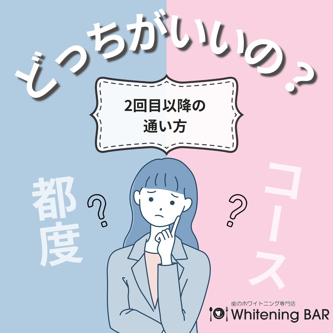 ︎ こんにちは! WhiteningBARアティ郡山店です🦷🤍 当店では2回目以降のご来店の方には 都度払いかコース、通い放題でのご案内をさせていただいております◎ 今回はコースと都度払いの違いをご説明いたします! まず、都度払いは1照射5,585円で15分間照射していきます! 当店では基本的に2回連続ケアをオススメしており、 2回連続ですと11,170円で30分照射となります!🏻 コースですと、1回あたりの単価は回数によって変わります! 例えば12回コースであれば55,200円なので、 1回あたりの料金は4,600円程になります! この時点で都度払いよりもお得になってくれますよ🩷ྀི さらにコースのお客様は1回のライトの照射時間が20分になりますので、2回連続ケアですと40分間当たることができます! 都度払いより10分も多く照射していただけるんです お色を上げていく段階での10分はとても重要になります! 料金的にも、照射時間的にもコースの方がかなりお得です️️ 回数も6回~36回と幅広くご用意がございますので、 お客様のお色や、ご予算、通える頻度に合わせて、 回数をお選びいただけます♀️ྀི また、初回ご来店時にコースをご契約いただくととってもお得なキャンペーンもついてきます! 何回位やったらいいんだろう、、、この回数だと少ないのかな?などご不明な点はしっかりとスタッフがご説明いたします! 是非お得に、ケアをしてみませんか? 皆様のご来店、本日もお待ちしております!! ——————————————— ——————————————— ホワイトニングバーアティ郡山店 〒963-8002 福島県郡山市駅前1丁目16-7 アティ郡山6階 TEL:024-954-5656 営業時間:10:00~20:00 ——————————————— ——————————————— #ホワイトニング #セルフホワイトニング #ホワイトニング福島 #ホワイトニング郡山 #アティ郡山 #歯のホワイトニング #ホワイトニングサロン #ホワイトニングバー #whiteningbar #白い歯 #痛くないホワイトニング #郡山市 #郡山駅 #郡山駅周辺 #美容 #自分磨き #メンズにも人気 #歯磨き粉 #ブライダル #カップル #友達同士 #当日予約OK #キャンペーン #リーズナブル #格安クーポン #施術効果 #施術写真