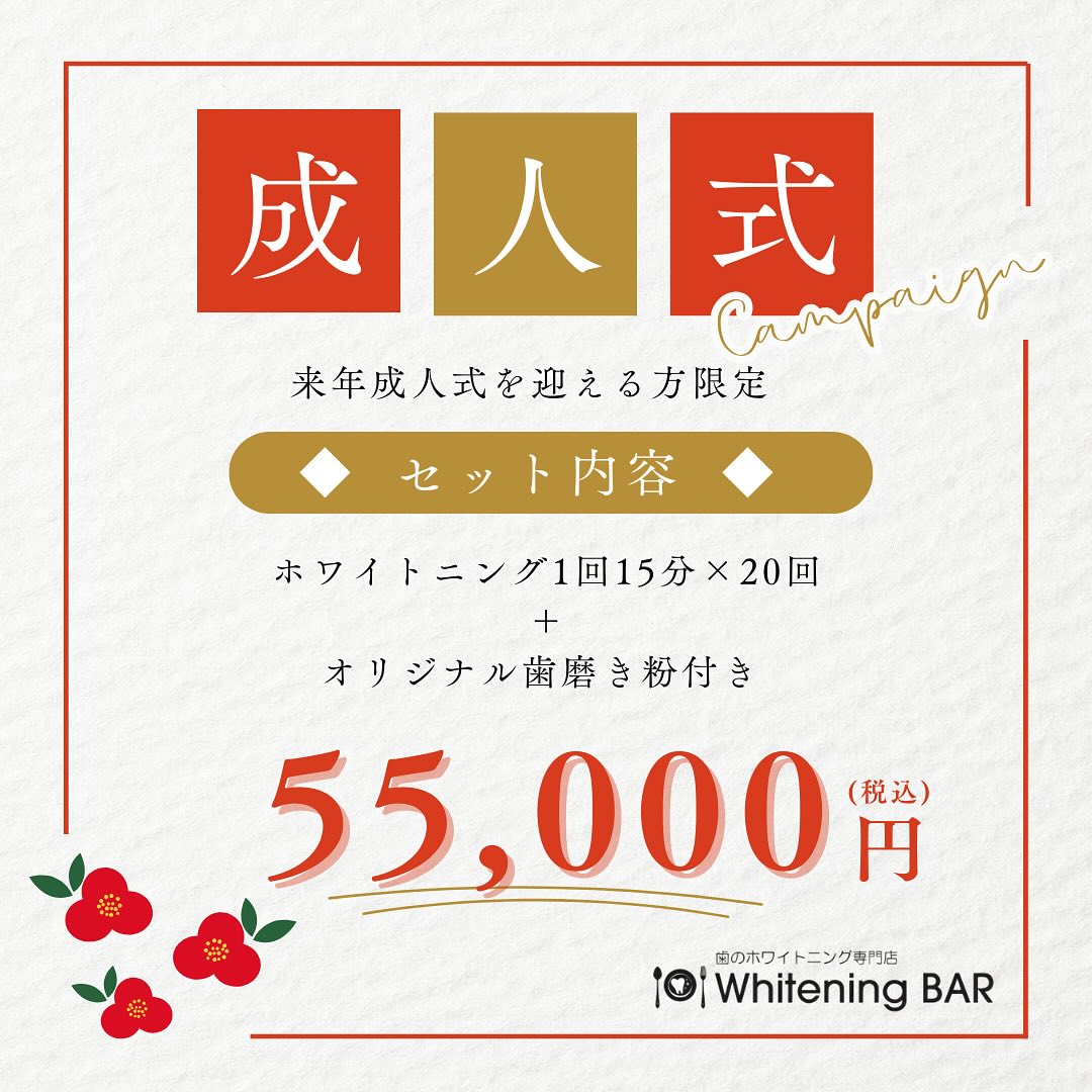 ︎ こんにちは! ホワイトニングバーアティ郡山店です🦷🤍 当店では成人式や前撮りを控えた20歳を迎えられるお客様に多くご来店いただいております️ 成人式や前撮りは人生一大イベントですよね️ 成人式や前撮りの前に美容室やエステ、ネイル等時間やお金をかけて臨まれることと思います️ しかし、1番重要なホワイトニングを忘れてはいけません!︎︎ どんなに綺麗なお姿でも歯が黄ばんでいては勿体ないです…🥲 歯を白くして最高の笑顔で前撮りや成人式を迎えませんか? ホワイトニングバーでは2025年1月に成人式を迎える方を対象に特別なキャンペーンを実施中です!-`⋆ 通常ライト照射20回¥114,500円(税込)が なんと️55,000円(税込)️ とってもお得にホワイトニングが出来ちゃいます!️️️ こちらに更に当店オリジナルの歯磨き粉(¥2,800(税込))もついてきちゃいます𓈒𓏸 人生で一度きりの成人式に向けて、当店のホワイトニングで白く綺麗な歯を手に入れましょう!⸜🏻⸝ ——————————————— -—————————————— ホワイトニングバーアティ郡山店 〒963-8002 福島県郡山市駅前1丁目16-7 アティ郡山6階 TEL:024-954-5656 営業時間:10:00~20:00 ——————————————— ——————————————— #ホワイトニング #セルフホワイトニング #ホワイトニング福島 #ホワイトニング郡山 #アティ郡山 #歯のホワイトニング #ホワイトニングサロン #ホワイトニングバー #whiteningbar #白い歯 #痛くないホワイトニング #郡山市 #郡山駅 #郡山駅周辺 #美容 #自分磨き #メンズにも人気 #歯磨き粉 #ブライダル #カップル #友達同士 #当日予約OK #キャンペーン #リーズナブル #格安クーポン #施術効果 #施術写真