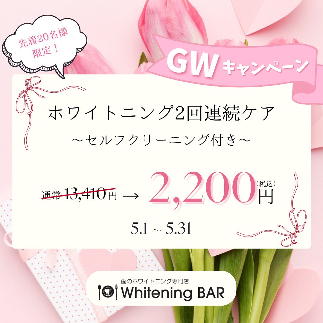 ︎ こんにちは! WhiteningBARアティ郡山店です🦷️ 5月になりましたね 皆様はゴールデンウィークのご予定は決まっていますか? 今年のゴールデンウィークは晴れの日が多く 絶好のお出かけ日和ですね 晴れの日には白い歯がいつも以上に輝いて見えますよ 是非当店のホワイトニングで白い歯を手に入れてください.⋆𝜗𝜚 当店では5月・GWキャンペーンを実施します! ️先着20名様限定!初回メニュー人気No.1️ ホワイトニング2回連続ケア+セルフクリーニング 通常13,410円 ▷ 2,200円❣️ この機会に是非ホワイトニングを始めてみませんか? 皆様のご来店心よりお待ちしております! ——————————————– ——————————————- ホワイトニングバーアティ郡山店 〒963-8002 福島県郡山市駅前1丁目16-7 アティ郡山6階 TEL:024-954-5656 営業時間:10:00~20:00 ——————————————– ——————————————– #ホワイトニング #セルフホワイトニング #ホワイトニング福島 #ホワイトニング郡山 #アティ郡山 #歯のホワイトニング #ホワイトニングサロン #ホワイトニングバー #whiteningbar #白い歯 #痛くないホワイトニング #郡山市 #郡山駅 #郡山駅周辺 #美容 #自分磨き #メンズにも人気 #歯磨き粉 #ブライダル #カップル #友達同士 #当日予約OK #キャンペーン #リーズナブル #格安クーポン #施術効果 #施術写真