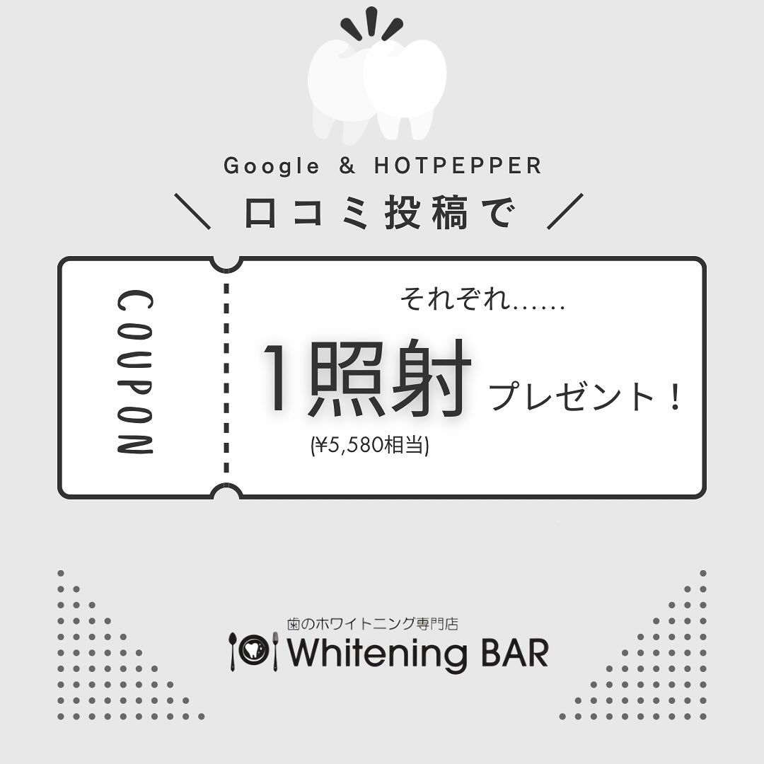 ︎ こんにちは! ホワイトニングバーアティ郡山店です🦷🤍 いつも当店をご利用いただき誠にありがとうございます♀️ྀི WhiteningBARではご来店後の口コミ投稿でお得なサービスがあることを皆さんはご存知ですか?💭 𓈒𓂂𓏸 口コミ投稿していただいたお客様には次回使えるホワイトニング1照射(15分)をプレゼントしております こちらはGoogleとHOT PEPPER Beautyで投稿していただくと、それぞれにプレゼントさせていただいております!🏻 ̖́ どちらも投稿いただくと通常¥11,170するホワイトニング2回連続照射が実質無料❣️❣️ 頂戴した口コミ内容は今後の技術向上に繋げて参りますので、口コミにて皆様のご意見をお聞かせください🫶🏻 今後ともWhiteningBARアティ郡山店をよろしくお願いいたします! 皆様の貴重な口コミ投稿お待ちしております⋆⸜⸝⋆ ——————————————— -—————————————— ホワイトニングバーアティ郡山店 〒963-8002 福島県郡山市駅前1丁目16-7 アティ郡山6階 TEL:024-954-5656 営業時間:10:00~20:00 ——————————————— ——————————————— #ホワイトニング #セルフホワイトニング #ホワイトニング福島 #ホワイトニング郡山 #アティ郡山 #歯のホワイトニング #ホワイトニングサロン #ホワイトニングバー #whiteningbar #白い歯 #痛くないホワイトニング #郡山市 #郡山駅 #郡山駅周辺 #美容 #自分磨き #メンズにも人気 #歯磨き粉 #ブライダル #カップル #友達同士 #当日予約OK #キャンペーン #リーズナブル #格安クーポン #施術効果 #施術写真