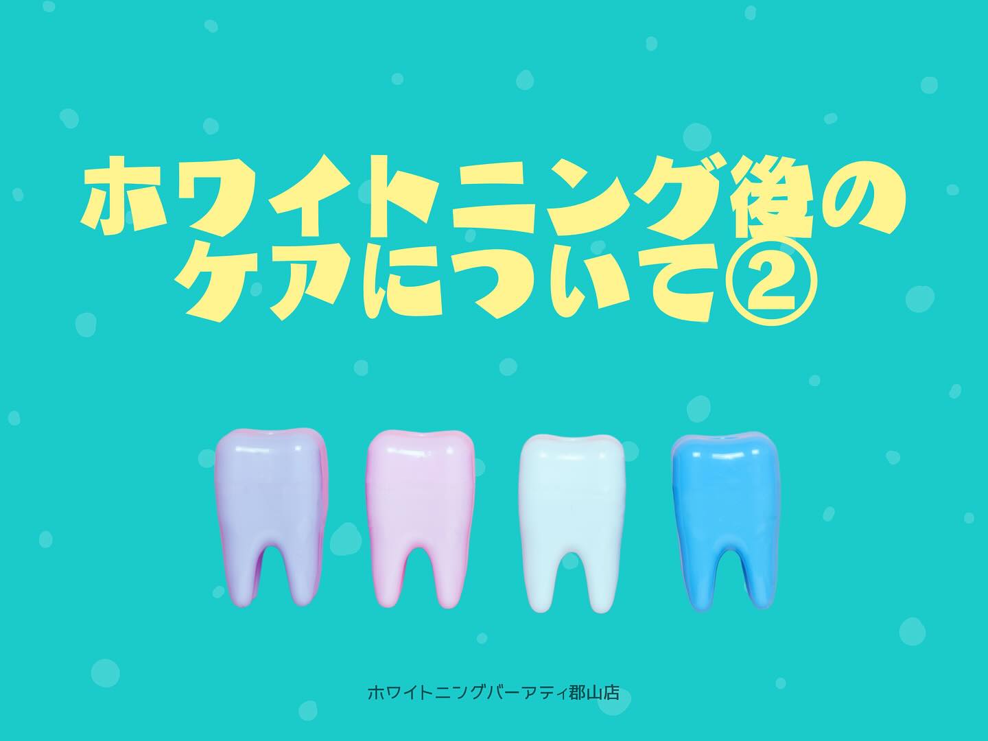 ︎ 本日は、ホワイトニング後のケアについてご紹介させて頂きます🏻 . ホワイトニング後のアフターケアや日頃のケアポイントを押さえることで、その効果をより長く持続させることができます🦷️ ️ホワイトニング直後の歯️ ホワイトニングをすると歯の表面を覆っていて「ペクリル」という皮膜が除去されることによって歯の表面が着色しやすい状態となります。 ホワイトニング施術を行った24時間以内は、食べ物や飲み物、喫煙には十分な注意が必要です。 また、口紅も再着色を起こす可能性がある為、女性の場合は口紅や色のついたリップグロスなどの使用を控えるといいと言われております。 その他、ぶどうやいちごなどの着色しやすい果物や、うがい薬、色つきの歯磨き粉も注意が必要です️️️ ——————————————— ——————————————— ホワイトニングバーアティ郡山店 〒963-8002 福島県郡山市駅前1丁目16-7 アティ郡山6階 TEL:024-954-5656 営業時間:10:00~20:00 ——————————————— ——————————————— #ホワイトニング #セルフホワイトニング #ホワイトニング福島 #ホワイトニング郡山 #アティ郡山 #歯のホワイトニング #ホワイトニングサロン #ホワイトニングバー #whiteningbar