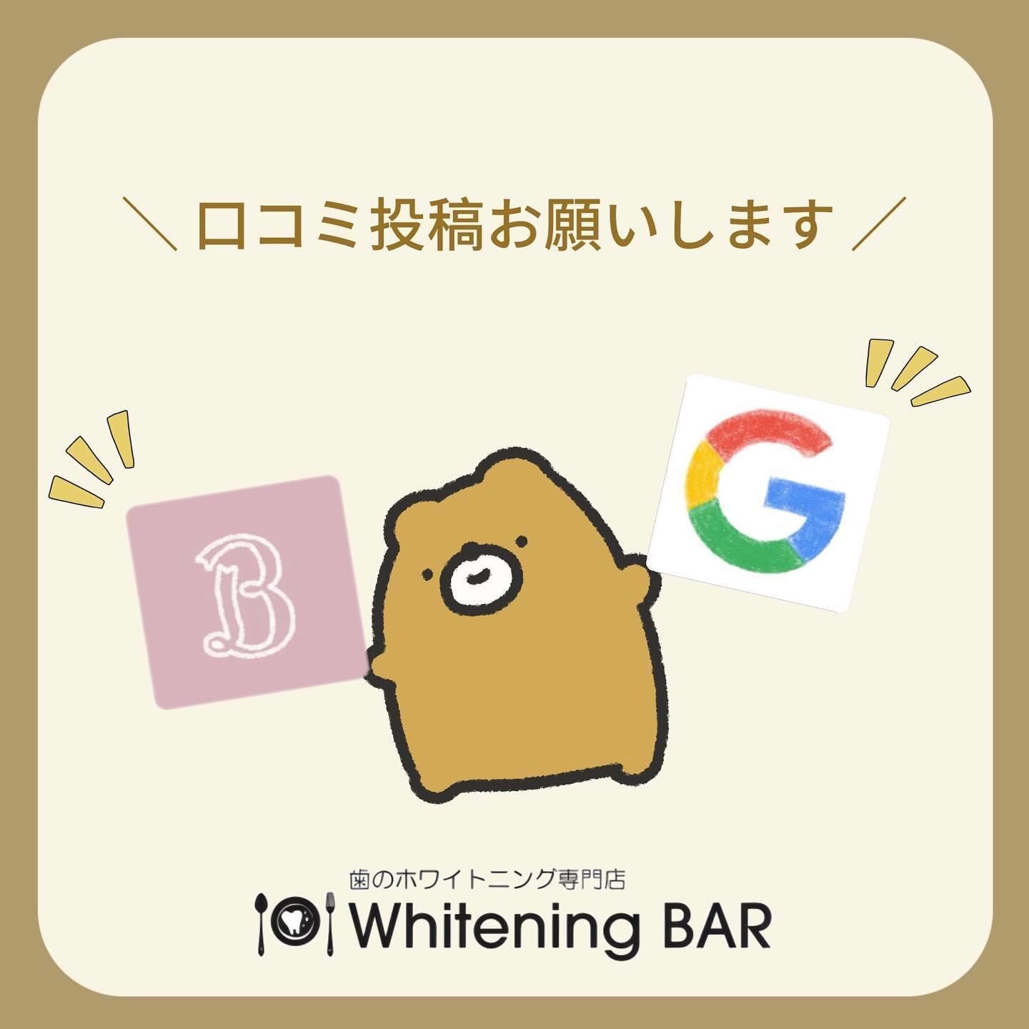 ︎ こんにちは! ホワイトニングバーアティ郡山店です🦷🤍 いつも当店をご利用いただき誠にありがとうございます♀️ྀི WhiteningBARではご来店後の口コミ投稿でお得なサービスがあることを皆さんはご存知ですか?💭 𓈒𓂂𓏸 口コミ投稿していただいたお客様には次回使えるホワイトニング1照射(15分)をプレゼントしております こちらはGoogleとHOT PEPPER Beautyで投稿していただくと、それぞれにプレゼントさせていただいております!🏻 ̖́ どちらも投稿いただくと通常¥11,170するホワイトニング2回連続照射が実質無料❣️❣️ 頂戴した口コミ内容は今後の技術向上に繋げて参りますので、口コミにて皆様のご意見をお聞かせください🫶🏻 今後ともWhiteningBARアティ郡山店をよろしくお願いいたします! 皆様の貴重な口コミ投稿お待ちしております⋆⸜⸝⋆ ——————————————— -—————————————— ホワイトニングバーアティ郡山店 〒963-8002 福島県郡山市駅前1丁目16-7 アティ郡山6階 TEL:024-954-5656 営業時間:10:00~20:00 ——————————————— ——————————————— #ホワイトニング #セルフホワイトニング #ホワイトニング福島 #ホワイトニング郡山 #アティ郡山 #歯のホワイトニング #ホワイトニングサロン #ホワイトニングバー #whiteningbar #白い歯 #痛くないホワイトニング #郡山市 #郡山駅 #郡山駅周辺 #美容 #自分磨き #メンズにも人気 #歯磨き粉 #ブライダル #カップル #友達同士 #当日予約OK #キャンペーン #リーズナブル #格安クーポン #施術効果 #施術写真