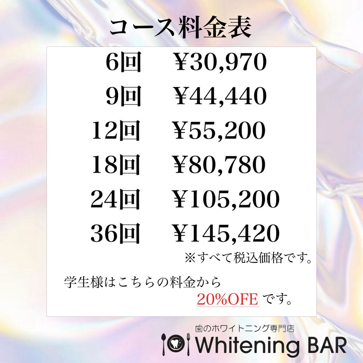 ︎ こんにちは!ホワイトニングバーアティ郡山店です! 本日は料金設定についてご案内致しますー( /•ө•)/𓂃 当店では1回のセルフホワイトニングの最大料金が5,580円です♪ コースを選択いただいた場合…… 一番オススメな12回コースですと 1回あたり『4,190円」でケアできます🫶🏻 ̖́- 更にコースの特典として 照射時間が1回あたり5分延長されるんです! たったの5分と思われがちですが、汚れを浮かす時間が長い分、歯のトーンアップを実感いただけます🏻 ︎ ⸝⸝ 9月もキャンペーンを行なっておりますので、気になる方はお気軽に店頭スタッフまたはお電話にてお問い合わせください🏻♀️ 皆様のご来店をスタッフ一同心よりお待ちしております❣️ ——————————————— ——————————————— ホワイトニングバーアティ郡山店 〒963-8002 福島県郡山市駅前1丁目16-7 アティ郡山6階 TEL:024-954-5656 営業時間:10:00〜20:00 ——————————————— ——————————————— #ホワイトニング #セルフホワイトニング #ホワイトニング福島 #ホワイトニング郡山 #アティ郡山 #歯のホワイトニング #ホワイトニングサロン #ホワイトニングバー #whiteningbar #白い歯 #痛くないホワイトニング #郡山市 #郡山駅 #郡山駅周辺 #美容 #自分磨き #メンズにも人気 #歯磨き粉 #ブライダル #カップル #友達同士 #当日予約OK #キャンペーン #リーズナブル #格安クーポン #施術効果 #施術写真