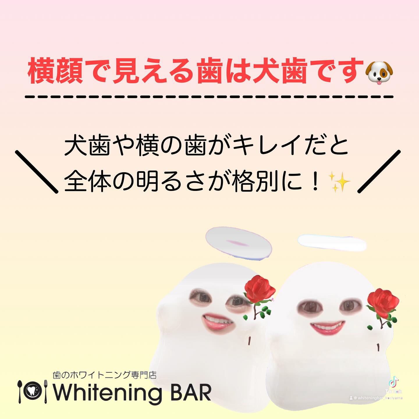 ︎ 実は犬歯は前歯よりも着色の度合いが濃い方がほとんどで、着色しやすく、お色が上がりにくい箇所なんです。 ですがWhiteningBARでは、通常正面からライト照射する所 一回目は右側、二回目は左側からというように 犬歯中心にライトがあたるように出来るので 上がりにくい犬歯もトーンが上がりやすくなるんです🤭 下の歯や犬歯と前歯との差を無くすことでとても綺麗に見えますよ 当店のWhiteningBAR Paste Peachを、いつもの歯磨き粉の代わりに使い始めて頂くと、ホームケアも一緒にできちゃいます❣️ 気軽にスタッフにお声がけ下さい! ——————————————— ——————————————— ホワイトニングバーアティ郡山店 〒963-8002 福島県郡山市駅前1丁目16-7 アティ郡山6階 TEL:024-954-5656 営業時間:10:00〜20:00 ——————————————— ——————————————— #ホワイトニング #セルフホワイトニング #ホワイトニング福島 #ホワイトニング郡山 #アティ郡山 #歯のホワイトニング #ホワイトニングサロン #ホワイトニングバー #whiteningbar #白い歯 #痛くないホワイトニング #郡山市 #郡山駅 #郡山駅周辺 #美容 #自分磨き #メンズにも人気 #歯磨き粉 #ブライダル #カップル #友達同士 #当日予約OK #キャンペーン #リーズナブル #格安クーポン #施術効果 #施術写真
