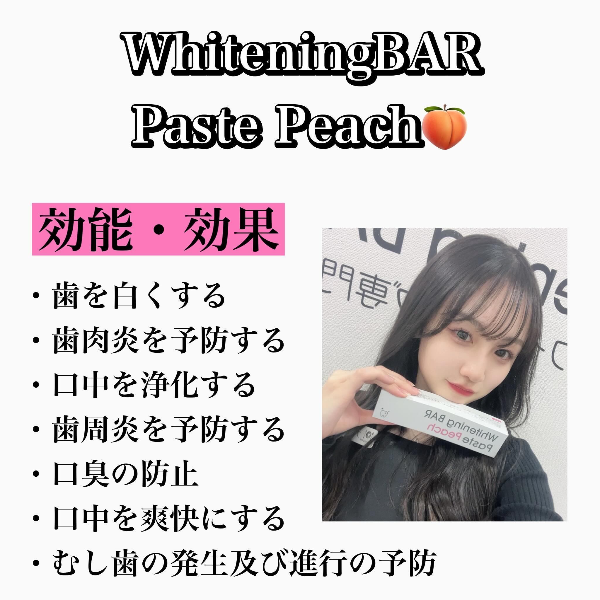 ︎ ホワイトニングバーではケアの一番最初に歯磨きをしていただきます🦷🪥 その際に提供している歯磨き粉がこちらっ!! Whitening BAR Paste Peachと申します(^^)♪ WhiteningBAR Paste Peachは いつもの歯磨き粉を替えるだけで「歯のホワイトニングケア」ができるプレミアムホワイトニング処方の新しいタイプの歯磨き粉です️ 研磨力に頼る多くの市販品とは違い、Whitening BAR Paste Peachはステイン、歯垢等を含有成分(CPP)で剥がし、次に高機能性シリカで吸着・除去し、最後にキラヤエキス(バラ科衛皮抽出物)で洗浄する、トリプルアクションメソッドを採用した画期的な歯磨き粉です。 また、安定した清掃力と成分効果性維持のため、ペースト粘稠度(ねんちょうど:粘り具合)を低めにコントロールし、ペーストパワーを最大限発揮できる様設計されています。 店舗にて販売中ですので気軽にお声がけ下さい🫶🏻️ ——————————————— ——————————————— ホワイトニングバーアティ郡山店 〒963-8002 福島県郡山市駅前1丁目16-7 アティ郡山6階 TEL:024-954-5656 営業時間:10:00〜20:00 ——————————————— ——————————————— #ホワイトニング #セルフホワイトニング #ホワイトニング福島 #ホワイトニング郡山 #アティ郡山 #歯のホワイトニング #ホワイトニングサロン #ホワイトニングバー #whiteningbar #白い歯 #痛くないホワイトニング #郡山市 #郡山駅 #郡山駅周辺 #美容 #自分磨き #メンズにも人気 #歯磨き粉 #ブライダル #カップル #友達同士 #当日予約OK #キャンペーン #リーズナブル #格安クーポン #施術効果 #施術写真