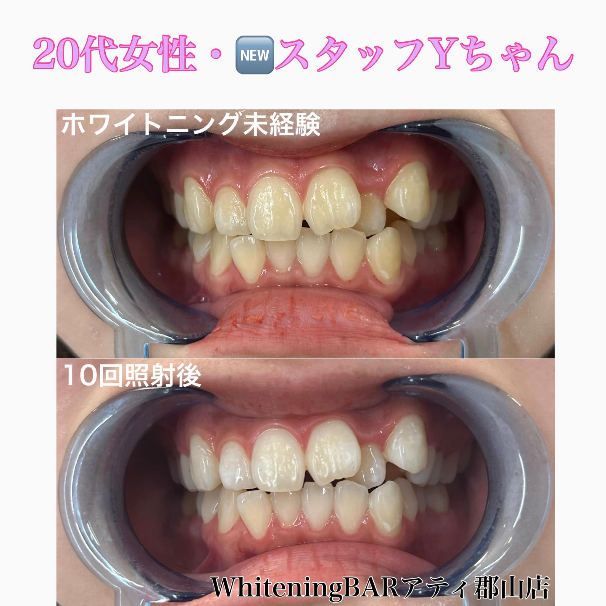 ︎ こんにちは🤗ホワイトニングバーアティ郡山店です🦷🍽 4月にスタッフYちゃんが加わりました️ ホワイトニングは未経験で、現在10回照射で このくらい明るくなりました♀️ これからもっと真っ白な歯を目指せます おすすめの通い方としては… はじめてのホワイトニングから 希望の白さになるまでは、お日にちをできるだけ詰めて通って頂くのがおすすめです🏻 目安はなるべく1~2週間以内になりますが、ホワイトニングバーは最短翌日ケア可能️ なので通い方次第で、 早く白い歯をgetすることができます!!🤟🏻 希望の白さになりましたら 月に1〜2回メンテナンスとしてケアをして、キープしてくださいね!! 郡山店人気ナンバーワン★コースは 12回コース、続いて18回コースとなっております!!´- この夏こそ、誰よりもわたしが一番❣️の輝かしい白い歯を手に入れてください ご予約は24時間簡単ネット予約、即時予約はお電話にてお願い致します🫶🏻 皆様のご予約、ご来店心よりお待ちしております ——————————————– ——————————————– ホワイトニングバーアティ郡山店 〒963-8002 福島県郡山市駅前1丁目16-7 アティ郡山6階 TEL:024-954-5656 営業時間:10:00〜20:00 ——————————————– ——————————————– #ホワイトニング #セルフホワイトニング #ホワイトニング福島 #ホワイトニング郡山 #アティ郡山 #歯のホワイトニング #ホワイトニングサロン #ホワイトニングバー #whiteningbar #白い歯 #痛くないホワイトニング #郡山市 #郡山駅 #郡山駅周辺 #美容 #自分磨き #メンズにも人気 #歯磨き粉 #ブライダル #カップル #友達同士 #当日予約OK #キャンペーン #リーズナブル #格安クーポン #施術効果 #施術写真