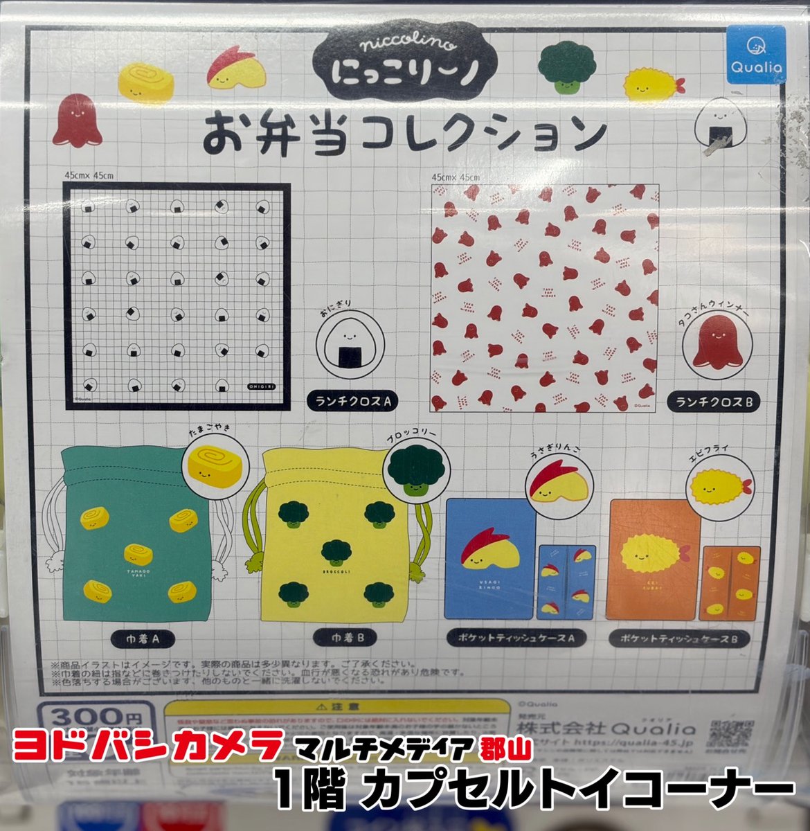 / ヨドバシ郡山1階カプセルトイ販売情報‼ \ ✅にっこりーノ お弁当コレクション ✅ちみっと小さな仲間たち ちみちみずのぬいぐるみ ✅ふわふわチューリップちゃんのぬいぐるみ ✅ゆるほわポメラニアン ぬいぐるみ