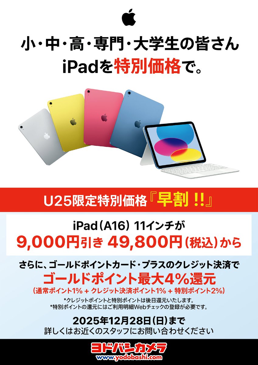 U25応援キャンペーン❗️ iPad・Macbook Airが今だけ最大23,000円引き✨ 新生活や進学準備にもぴったりの特別企画です🎵 地下1階Appleコーナーでスタッフがご案内いたします💁 ぜひお越しください❗️ ➡