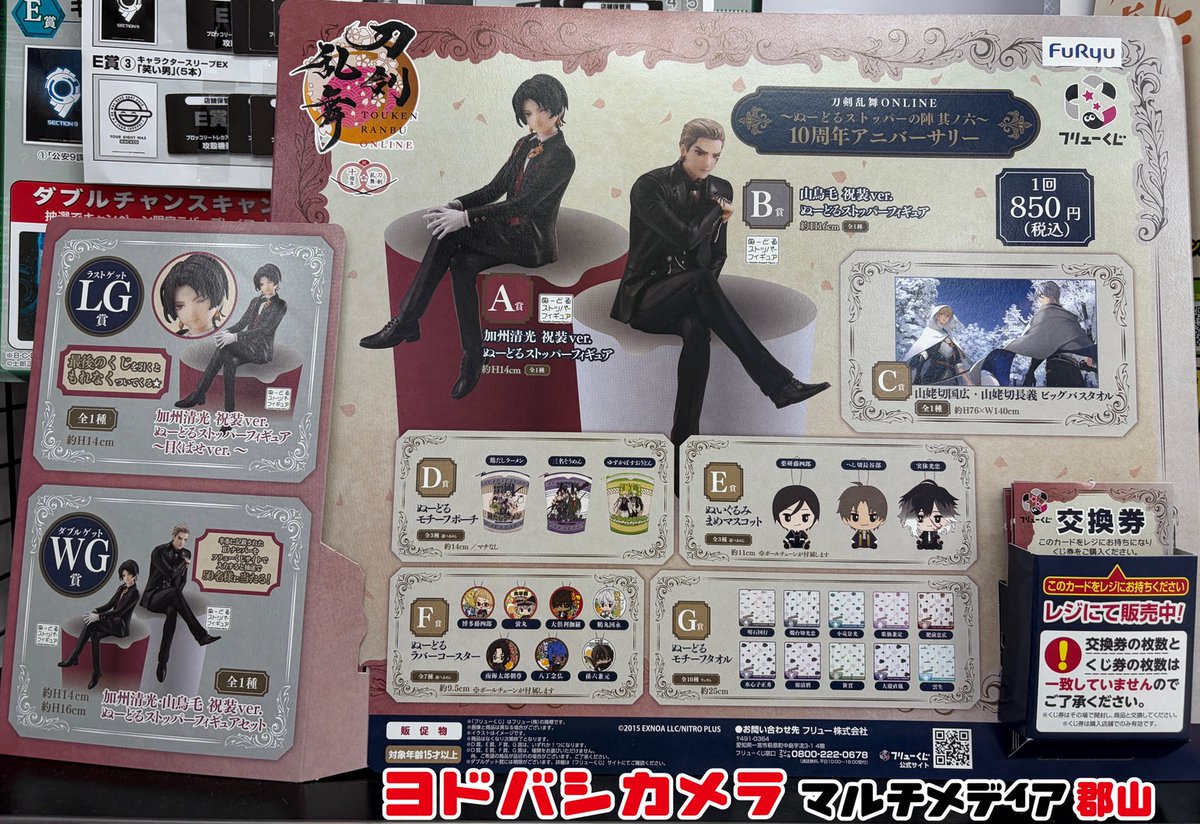 フリューくじ 刀剣乱舞ONLINE~ぬーどるストッパーの陣 其ノ六~ 好評販売中📣 今ならまだ伯仲タオルのチャンスあり🎵 ヨドバシ郡山地下1階玩具コーナーにて販売中です😊 🏬