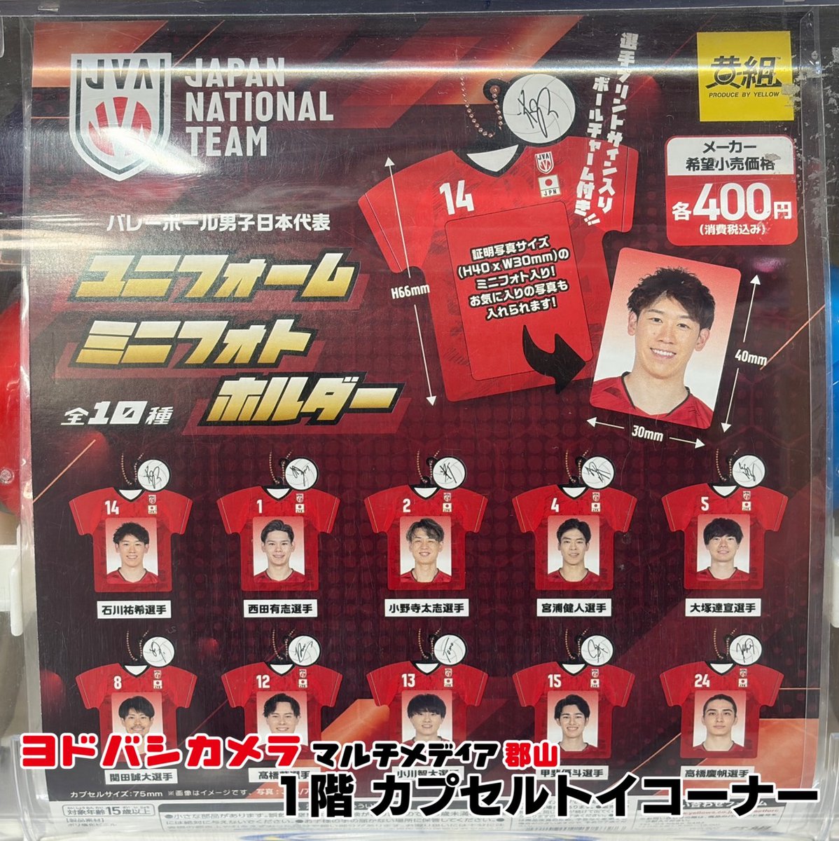 ヨドバシ郡山1階カプセルトイ販売情報‼️ バレーボール男子日本代表 ✅ユニフォームミニフォトホルダー ✅めじるしチャーム めじるしアクセサリー ✅サンリオキャラクターズ~なりきりまん~ ✅アイカツ!×プリパラ