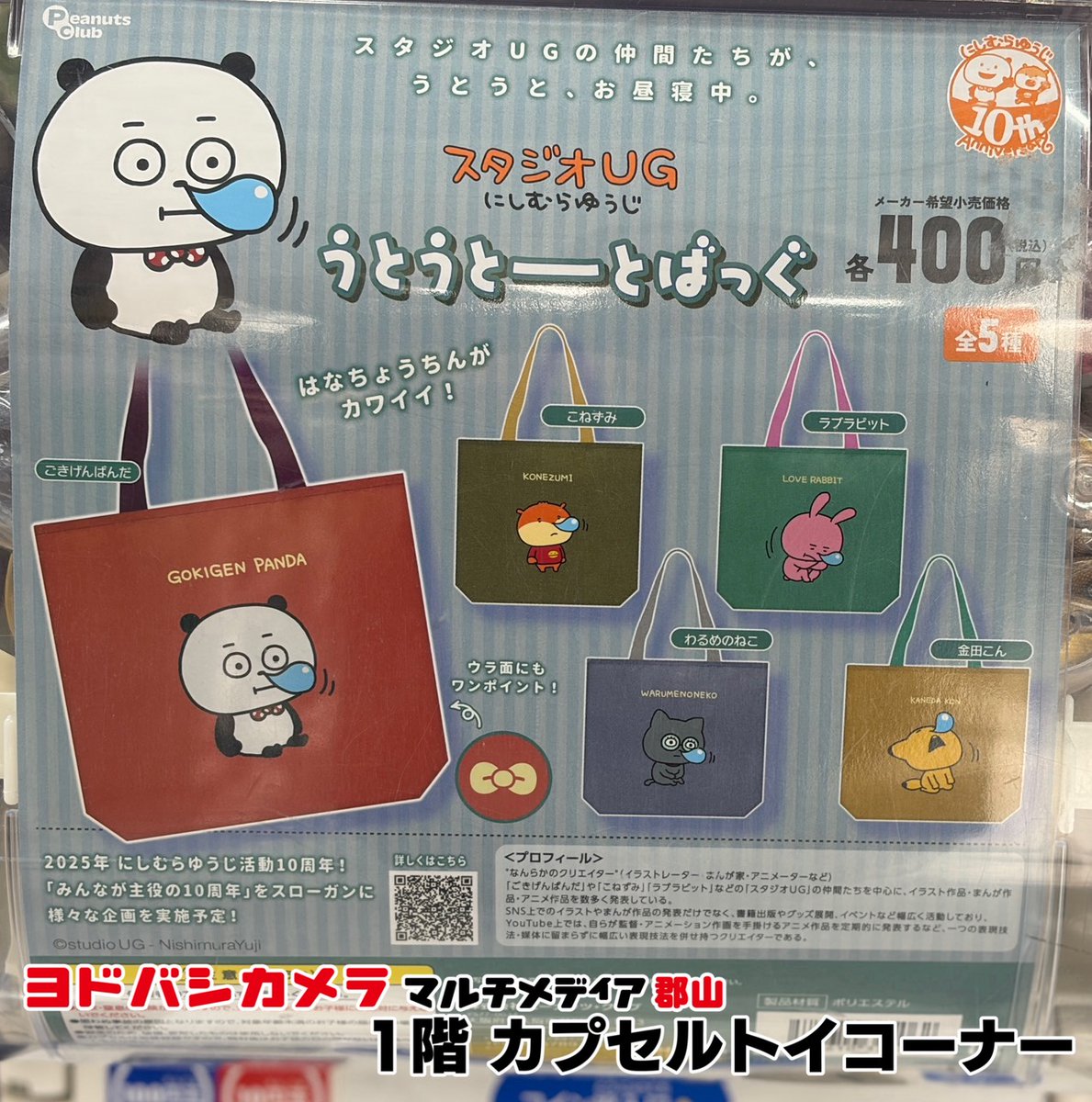 ヨドバシ郡山1階カプセルトイ販売情報‼️ ✅スタジオUG にしむらゆうじ うとうとーとばっく ✅葬送のフリーレン めじるしアクセサリー ✅スーパー戦隊シリーズ デフォルメフィギュアコレクション ✅mofusand にゃんこソーダ