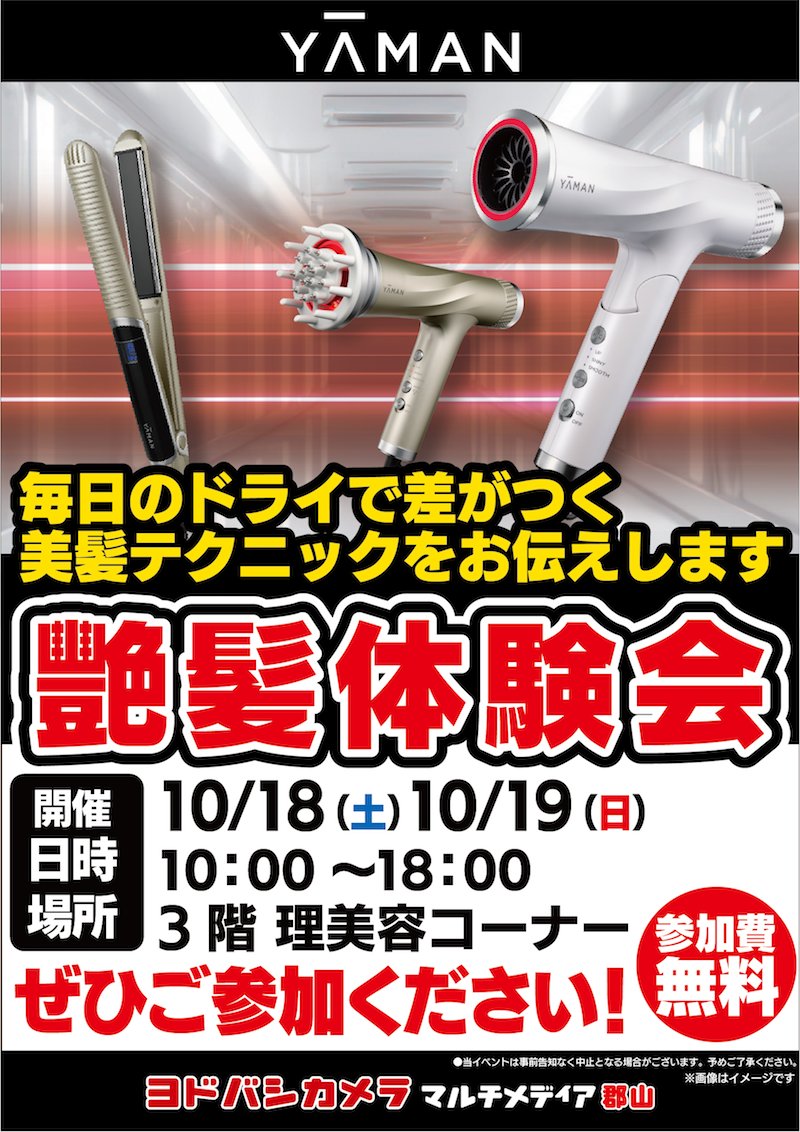 / 本日18時まで開催✨ ヤーマンのヘアケア製品体験会❗️ \ 新商品リフトドライヤースマートをはじめとしたヤーマン製品をお試しいただけます✨ お客様のお悩みにあった商品を専門知識豊富なスタッフがご提案します💁♀️ ぜひご参加ください❗️