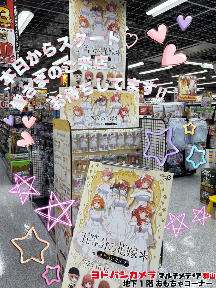 【五等分の花嫁*inヨドバシカメラ 開催❗️】 10/10(金)~10/26(日)まで期間限定 マンガ・アニメなど様々な媒体で大人気作品である ポップアップストア開催中です‼️👰✨ ここでしか購入できない商品がいっぱいあります❗️ ぜひお越しください‼️ ➡️ #五等分の花嫁