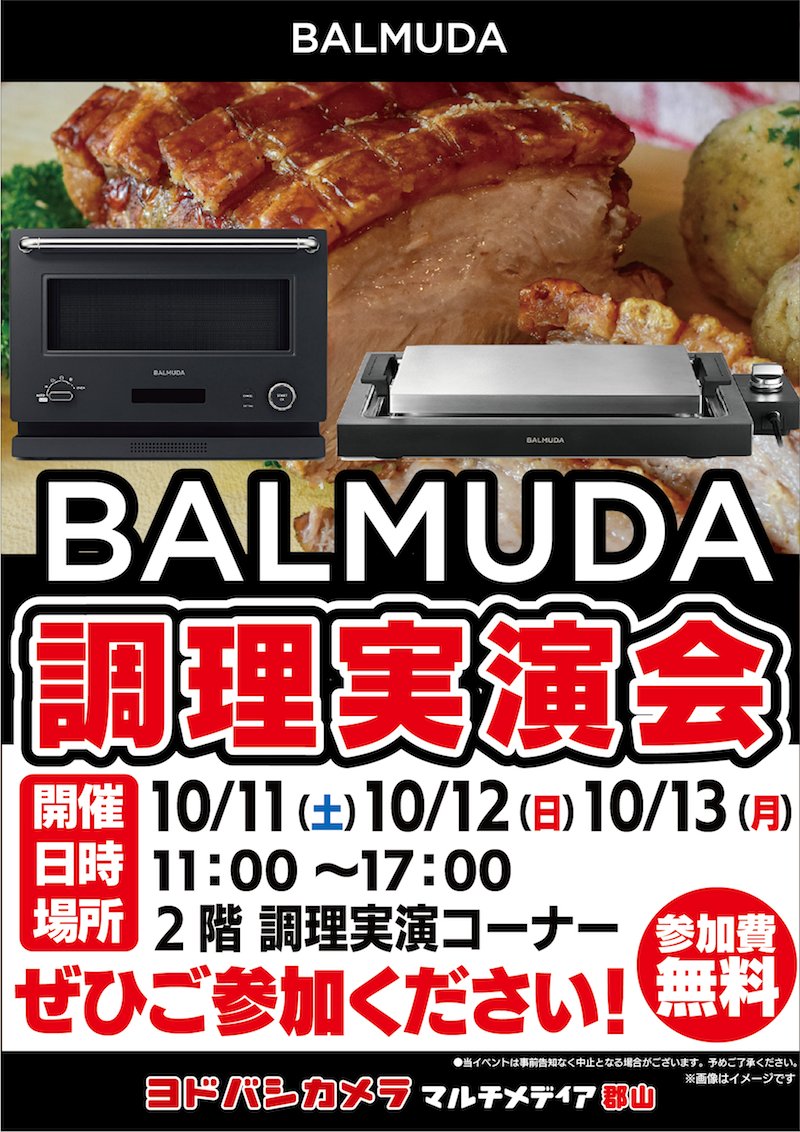 【調理実演会のご案内】 バルミューダのオーブンレンジ、ホットプレートを使用し、専用メニューのローストポークの実演調理を行います。 ご試食ができるイベントになりますので、ぜひお立ち寄りください😊 🗓️10/11(土)~13(月・祝) 🕙11時~17時 📍2階家電コーナー ➡️