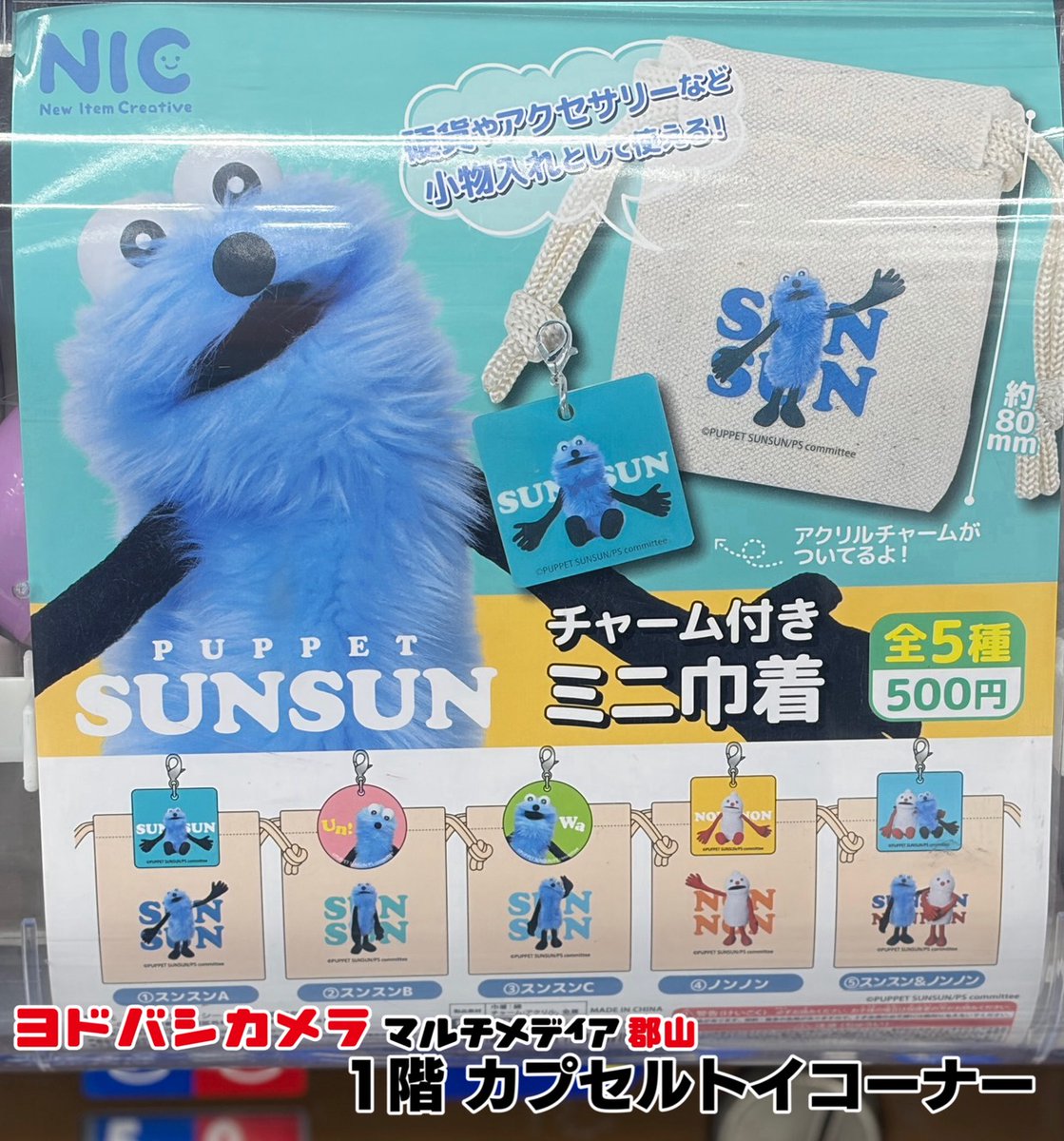 ヨドバシ郡山1階カプセルトイ販売情報‼️ ✅パペットスンスン チャーム付きミニ巾着 ✅神獣ベコたち もののけ編 改 ✅キャンメイク ミニチュアコレクション3 ✅新・ざわざわ森のがんこちゃん ぬいぐるみチャーム