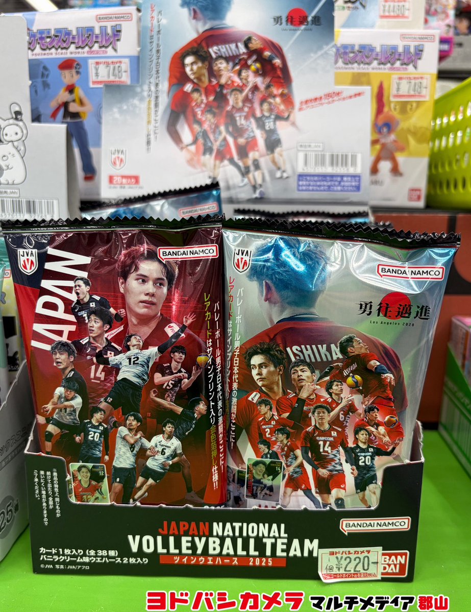 【最新食玩情報❗️】 ヨドバシ郡山地下1階おもちゃコーナーにて、 「JAPAN NATIONAL VOLLEYBALL TEAM ツインウエハース2025」を販売中‼️ 大好評バレーボール男子代表の メタリックプラカードが入っています✨ 気になる方はお早めに♪ ➡️